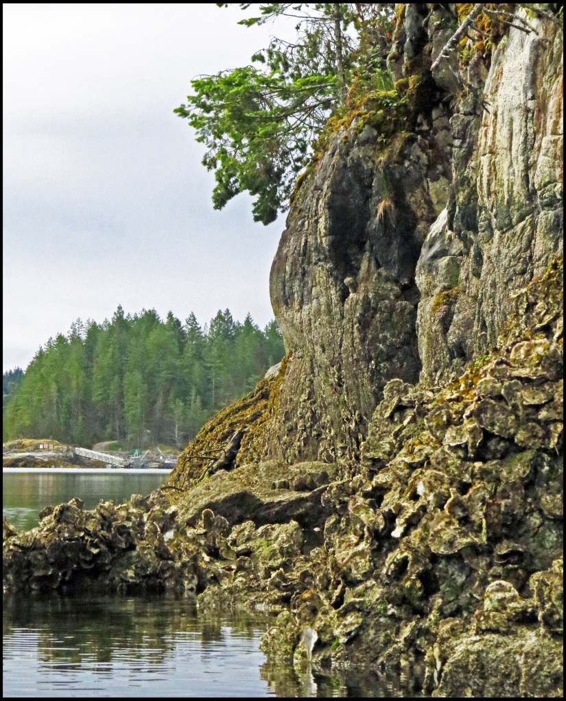 I somehow managed to carry my kayak back to the water without breaking my ankle on the oysters, got my groceries secured, and then headed back out into the tide rips, which were worse by now, and the wind was blowing about 20 knots. Just before I got to the entrance, a big Canadian Coast Guard cutter and its tender, started heading for the entrance also. I was going to have to deal with their wake, as well as the tide rips. Now, if that whale shows up again, it’s really going to be fun. I promised myself I would never kayak to this store during a spring tide again, ever….and kept paddling.