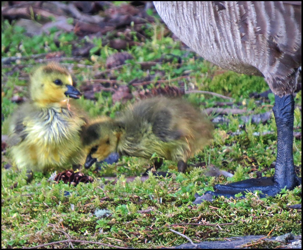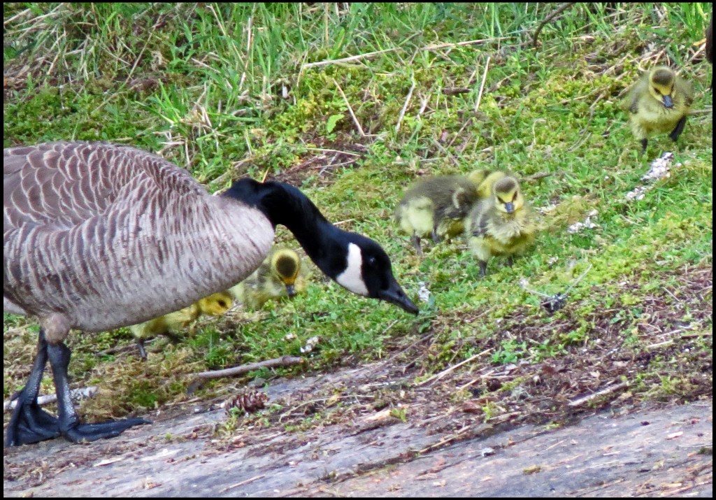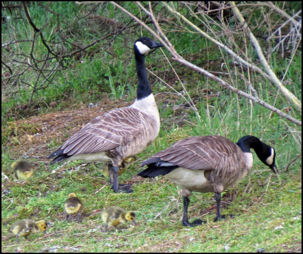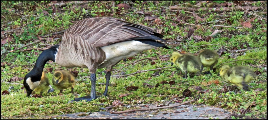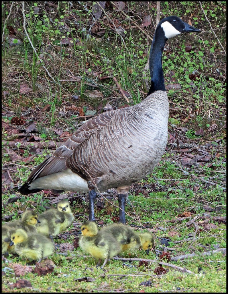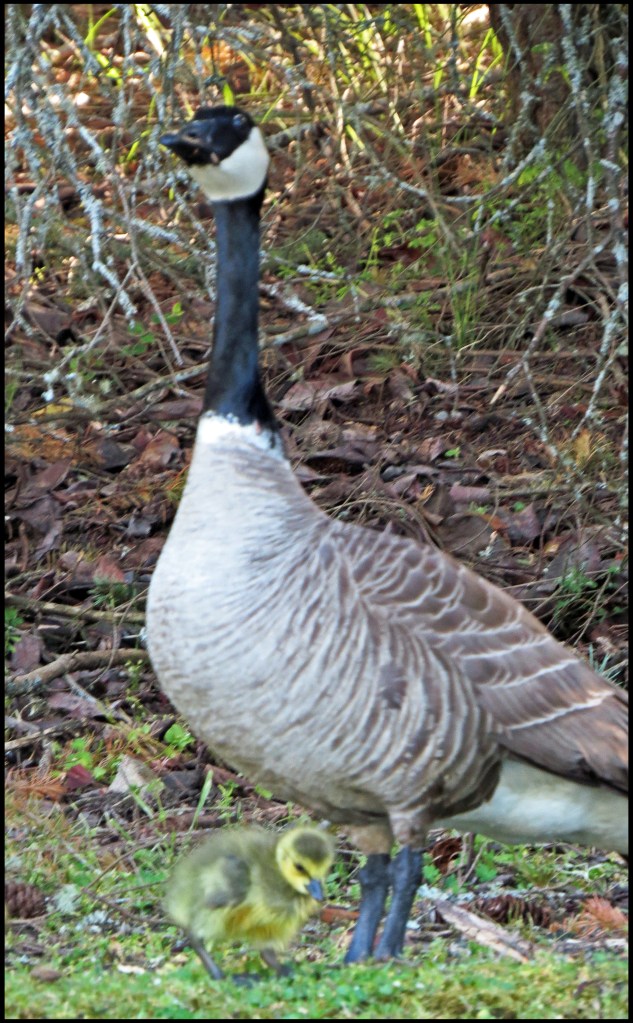 Well…..while looking for more patches of sedum, my eye caught a flash of white, just above the sedum. When I zoomed in on the white, I discovered a female Honker sitting just below the top of the bluff. I’d bet money that she was sitting on eggs, and I’d bet that lone Honker hanging around is the daddy.