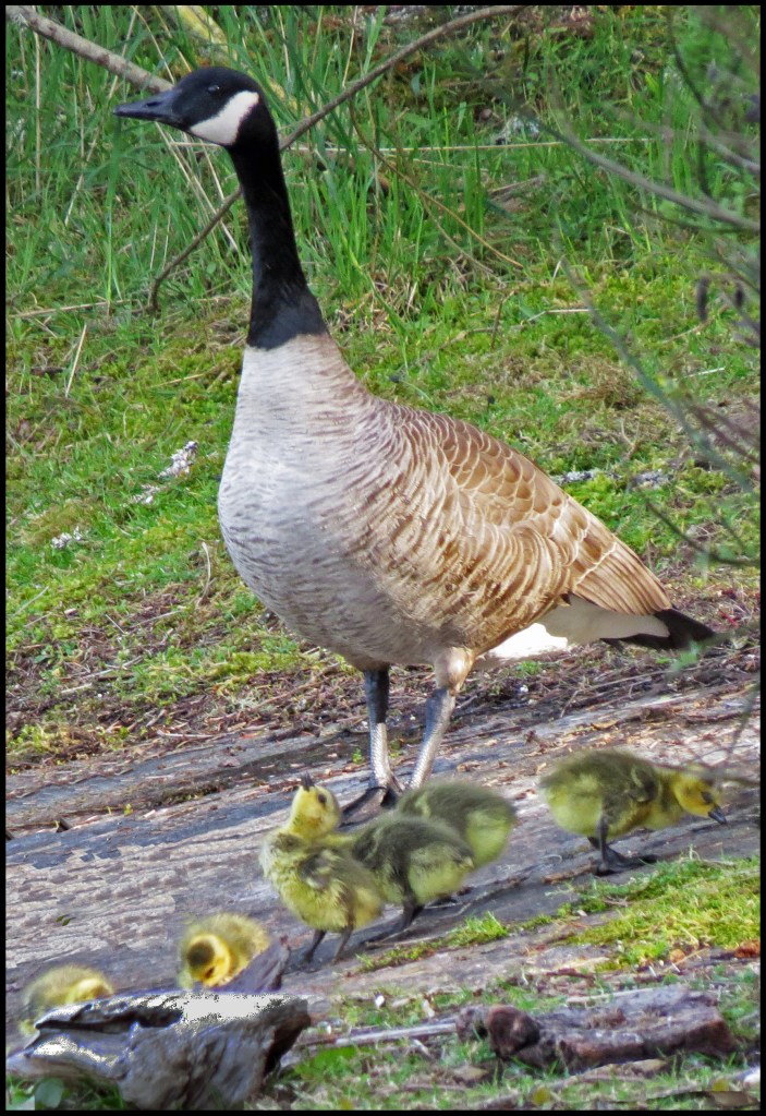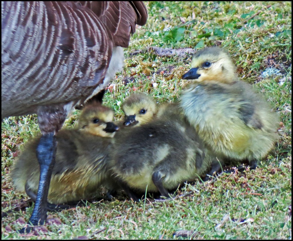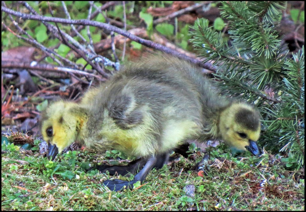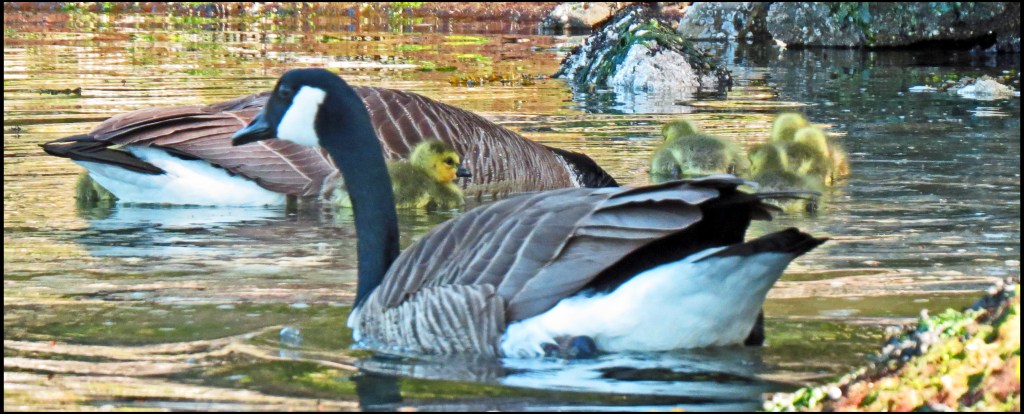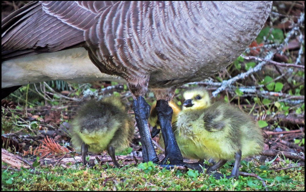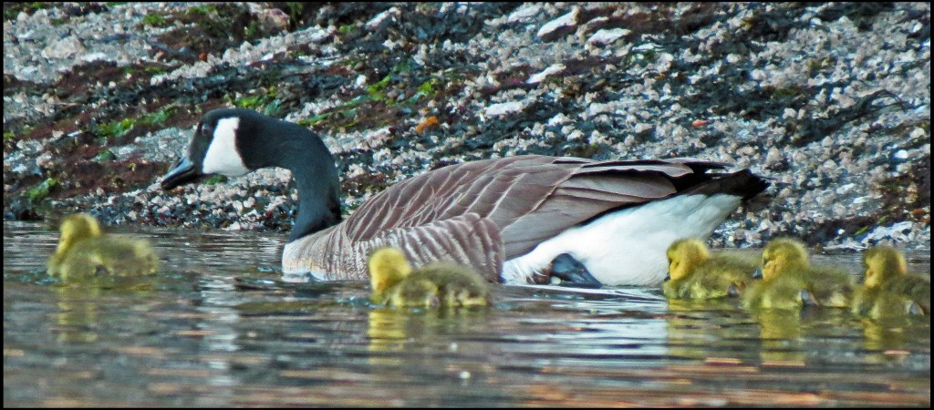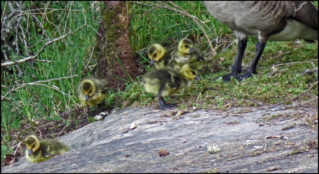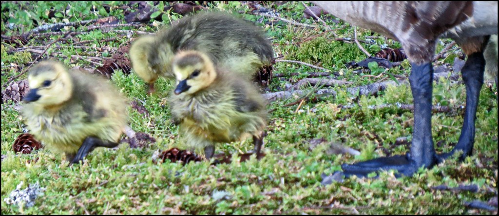 Well…..while looking for more patches of sedum, my eye caught a flash of white, just above the sedum. When I zoomed in on the white, I discovered a female Honker sitting just below the top of the bluff. I’d bet money that she was sitting on eggs, and I’d bet that lone Honker hanging around is the daddy.