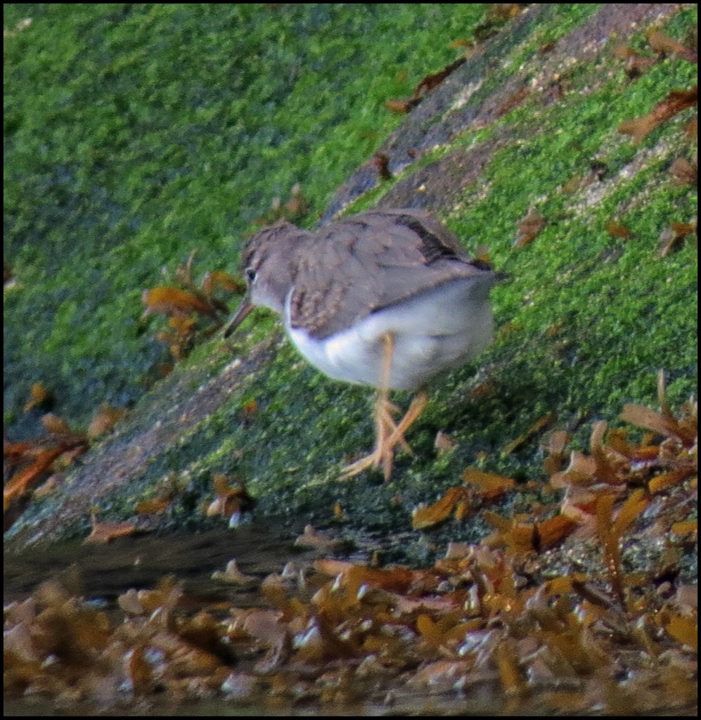 The sandhill kept moving farther and farther away from the shore.  By now I couldn’t see my kayak, which made me nervous.  I finally decided to go back and move the kayak farther up the beach.  I found an outcropping of rock and put the kayak on top of the rocks.  The tide would have to come up a couple of feet to reach it.
