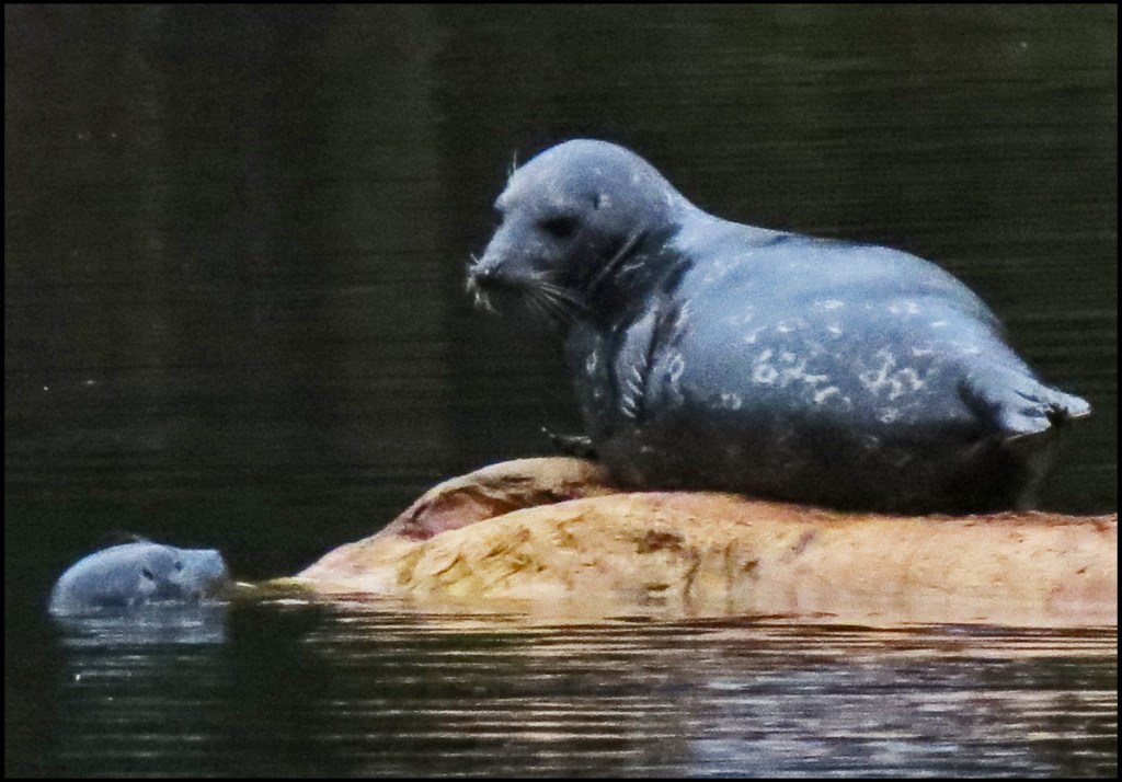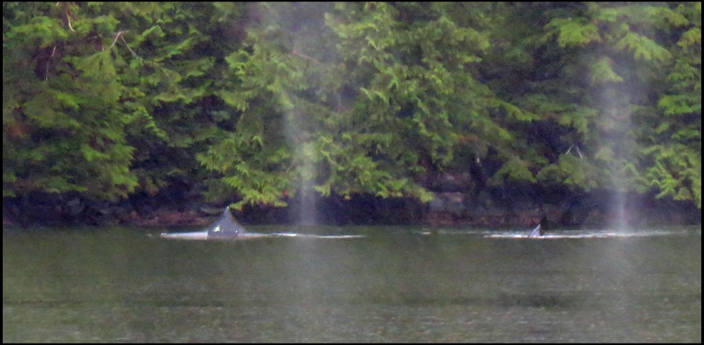 This whale and her baby were feeding along the shore in Hiekish Narrows, surfacing just long enough for me to get this long shot.