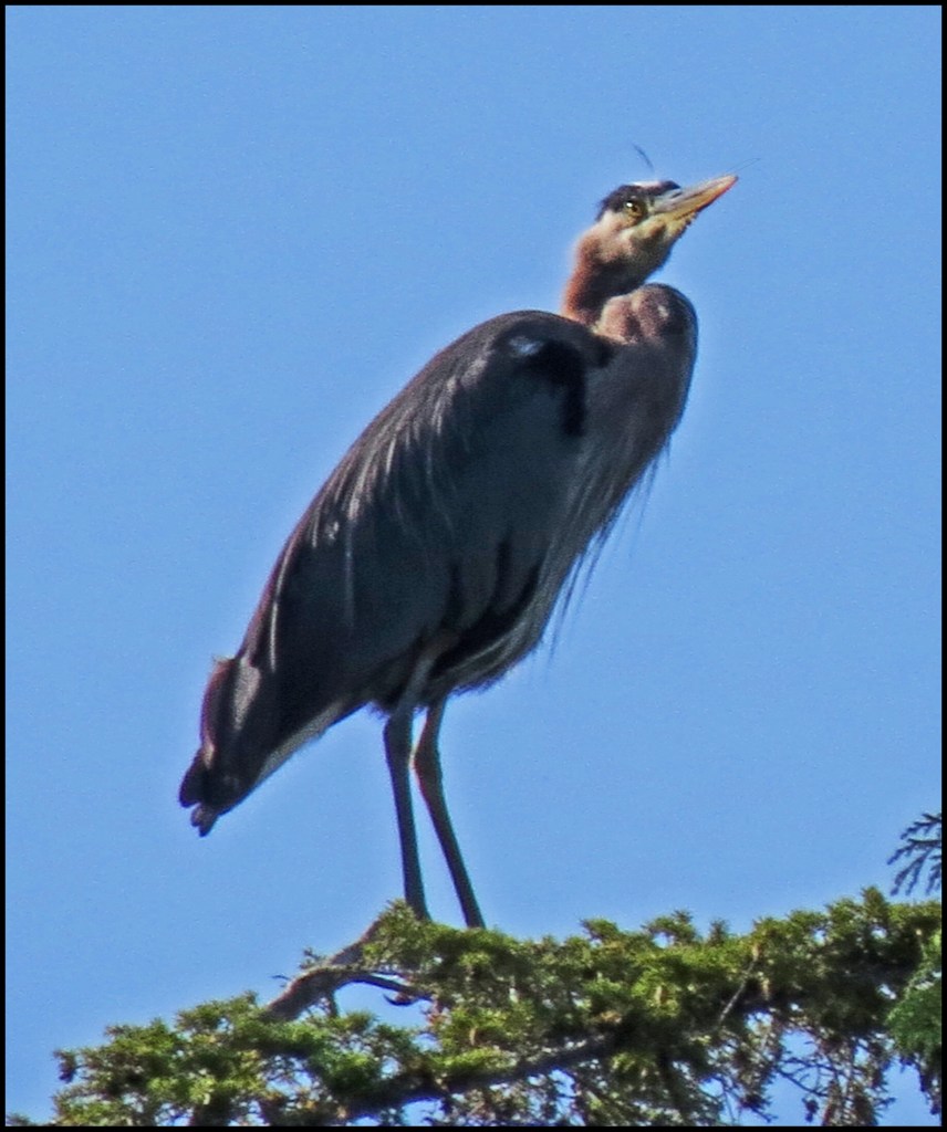 I headed for the entrance to Rescue, where I found this heron perched in the highest tree.  Maybe he wanted to check on that fog out in Mathieson Channel.
