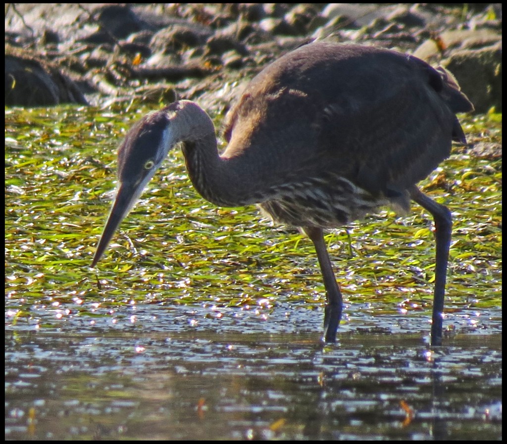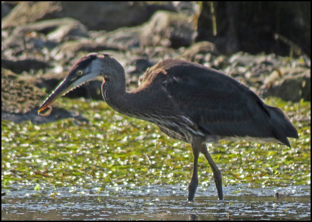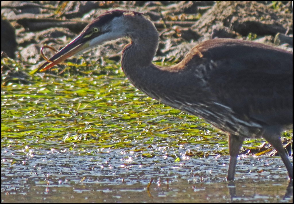 I’m up early this morning, hoping to find a sandhill crane like I did the last time we were here.  The sun is so bright that the glare on the water is blinding.  There are 5 or 6 herons fishing along the shore, but, of course, there is no way to capture them without shooting right into the sun.  Not good.