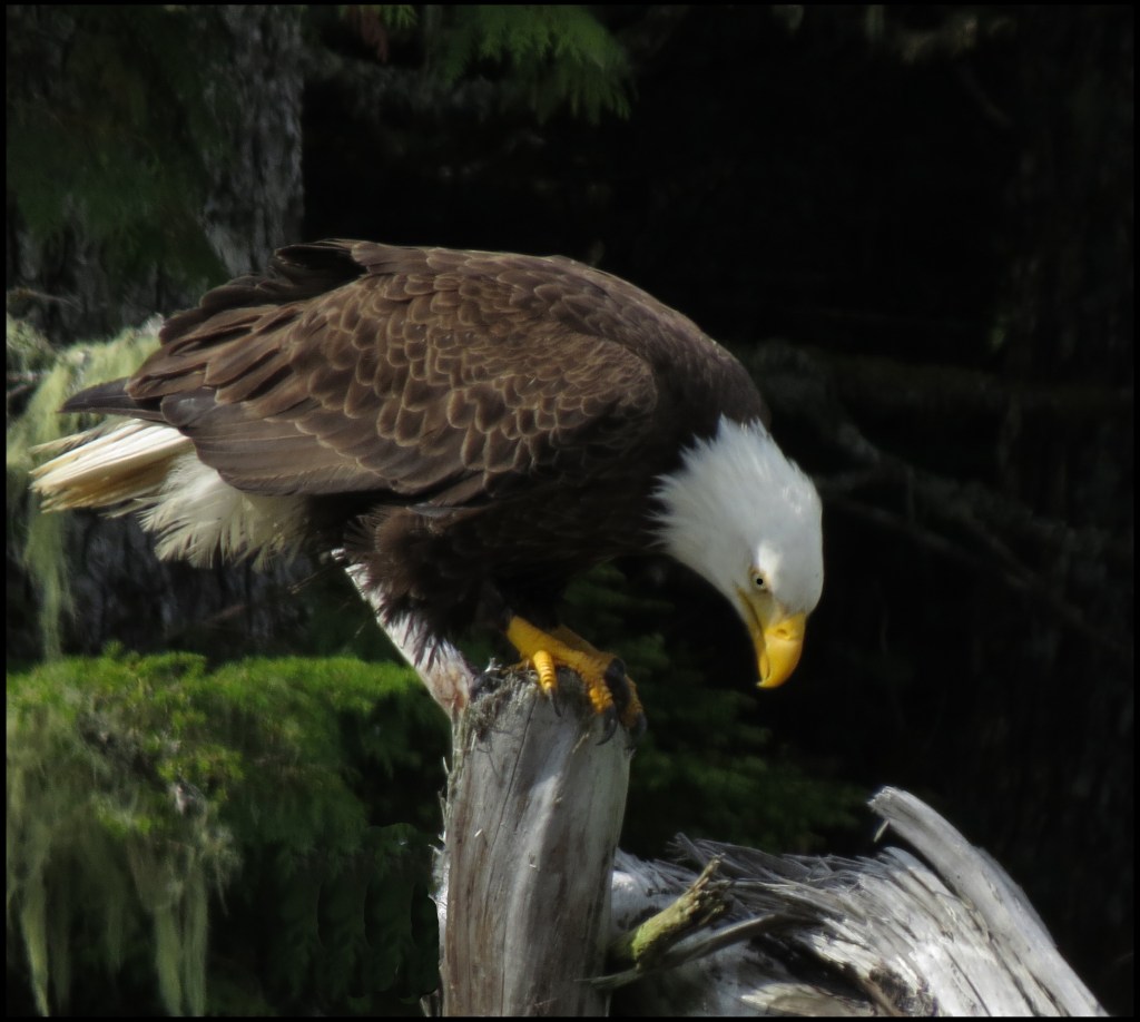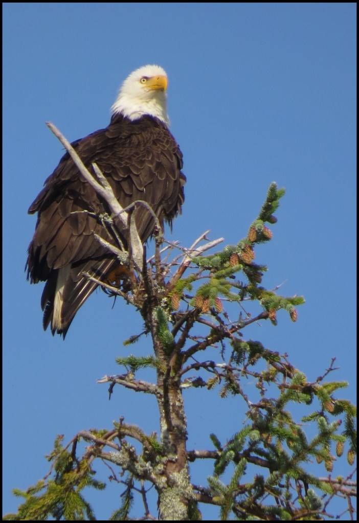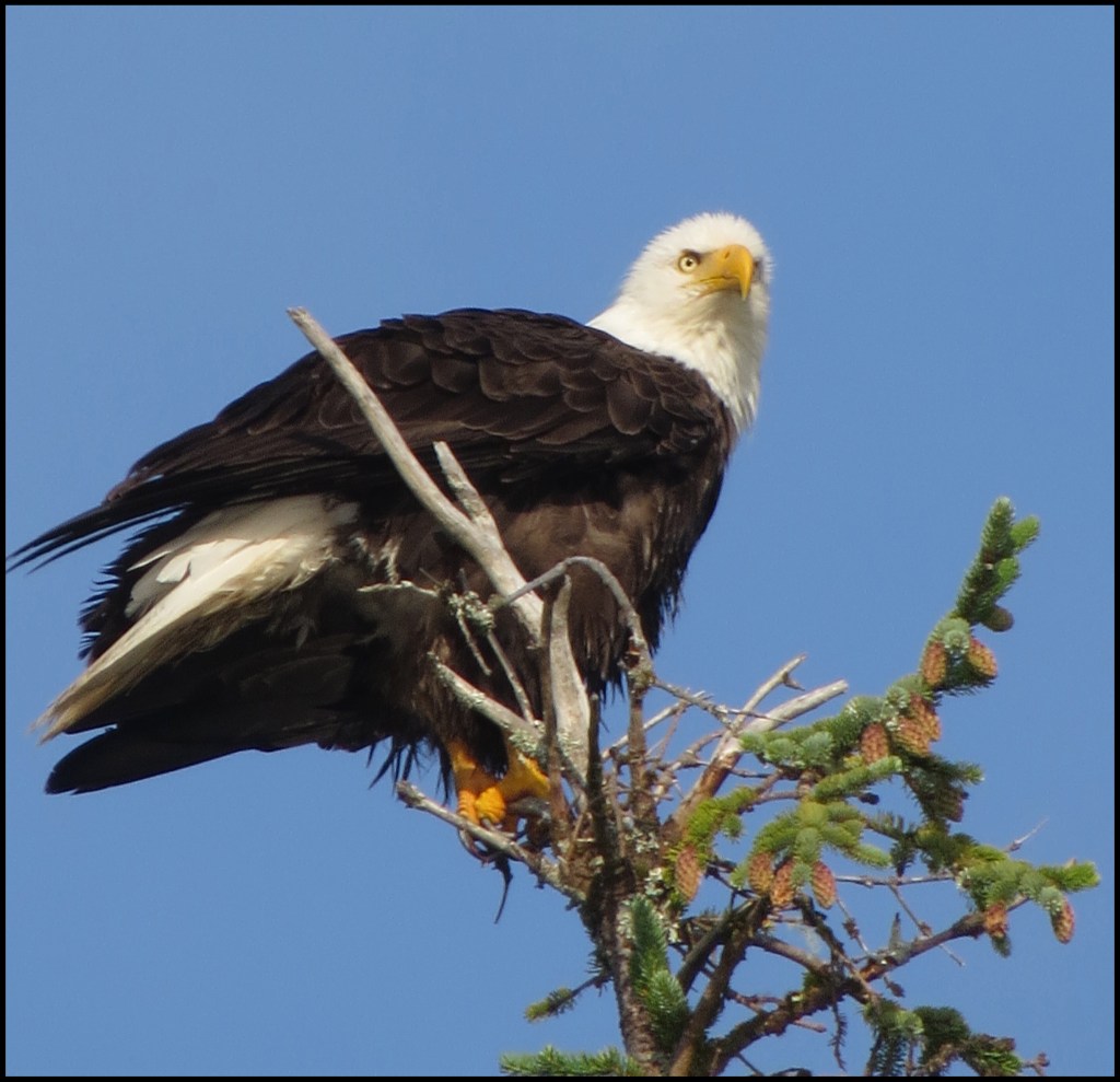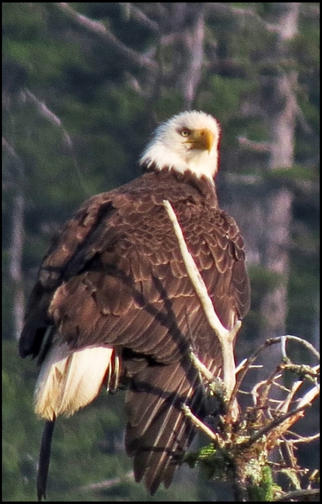 I paddled over to Barnard Harbour anchorage, hoping to get some shots of the waterfall, which should be pretty spectacular after the heavy rains.  Unfortunately, it required shooting right into the sun, which doesn’t work.  However, I did get a shot of this eagle.