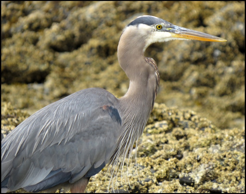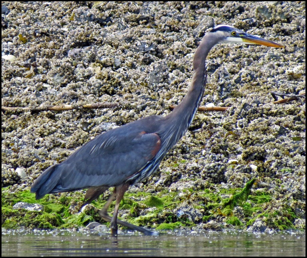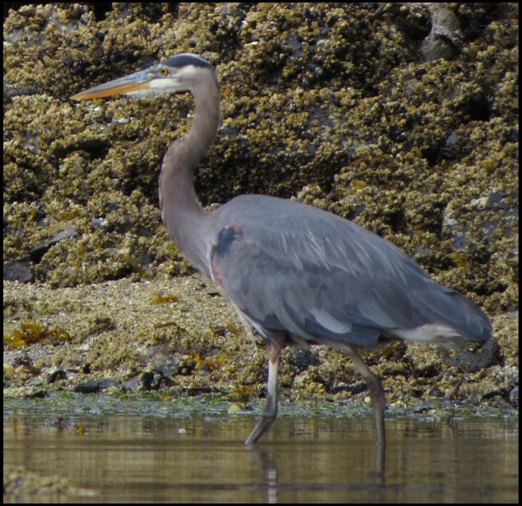 There wasn’t much going on in the creek, so I headed toward the entrance to Cameron Cove and spotted this heron fishing along the shore.
