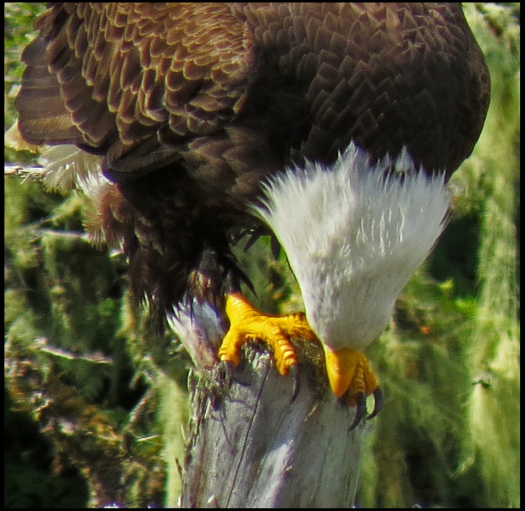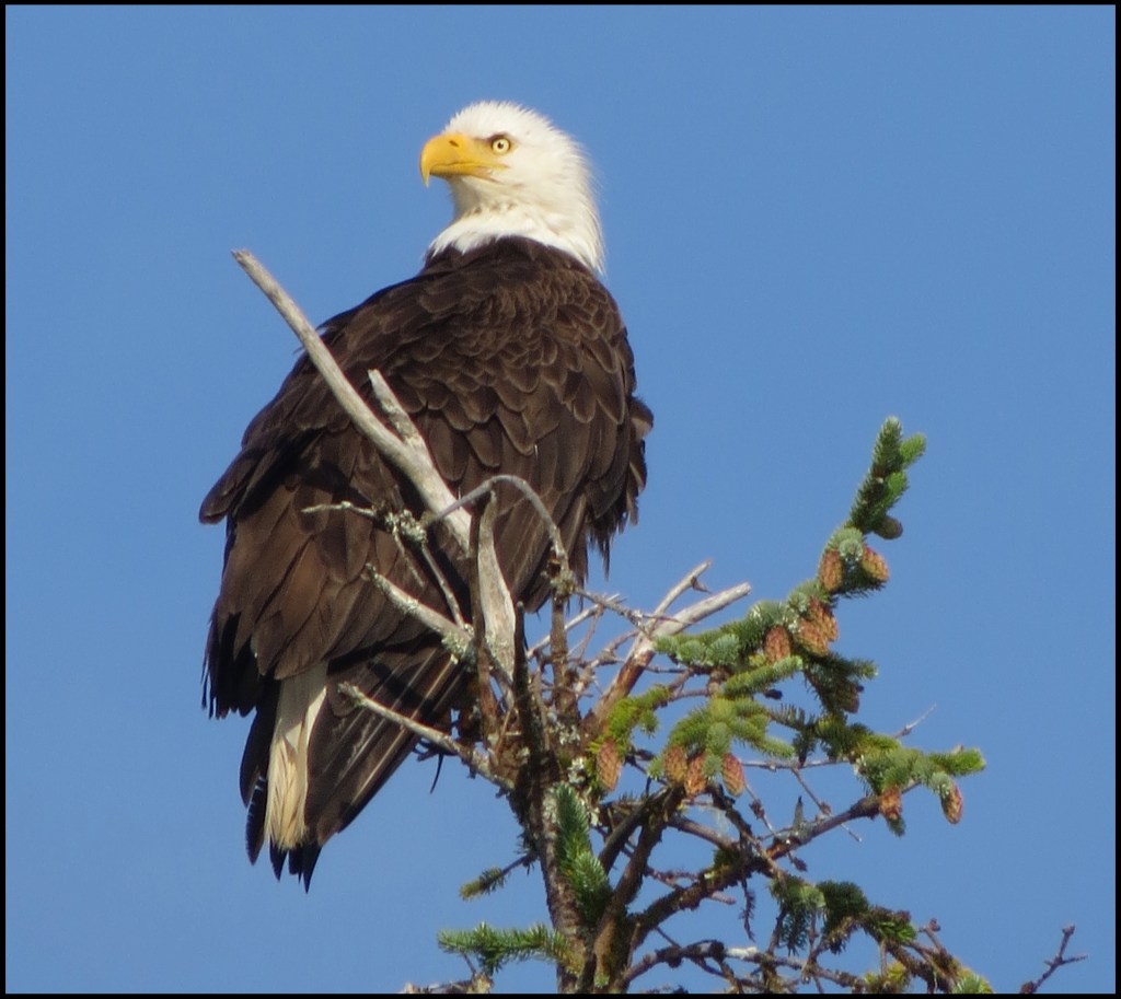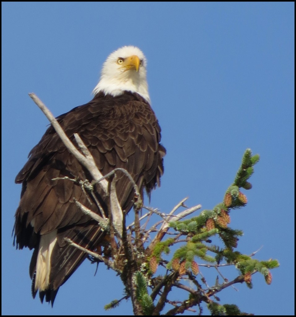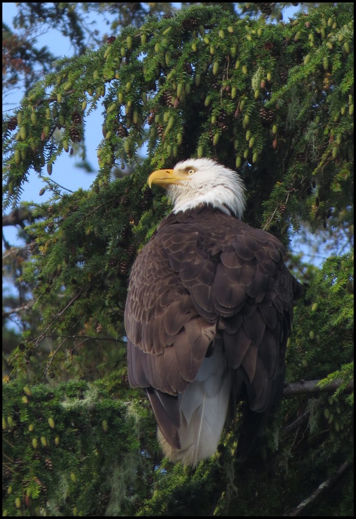 While Al repaired water pumps, I headed for Barnard Creek.  Unfortunately, the tide was pretty low, so I couldn’t get up very far.  I did manage to spot this eagle hoping to catch some breakfast.