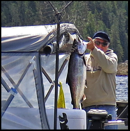 Our friends, Andy and Suzy, stopped by the boat to show us the beautiful king salmon they’d caught today.  Yesterday they caught a 13 lb. ling cod.