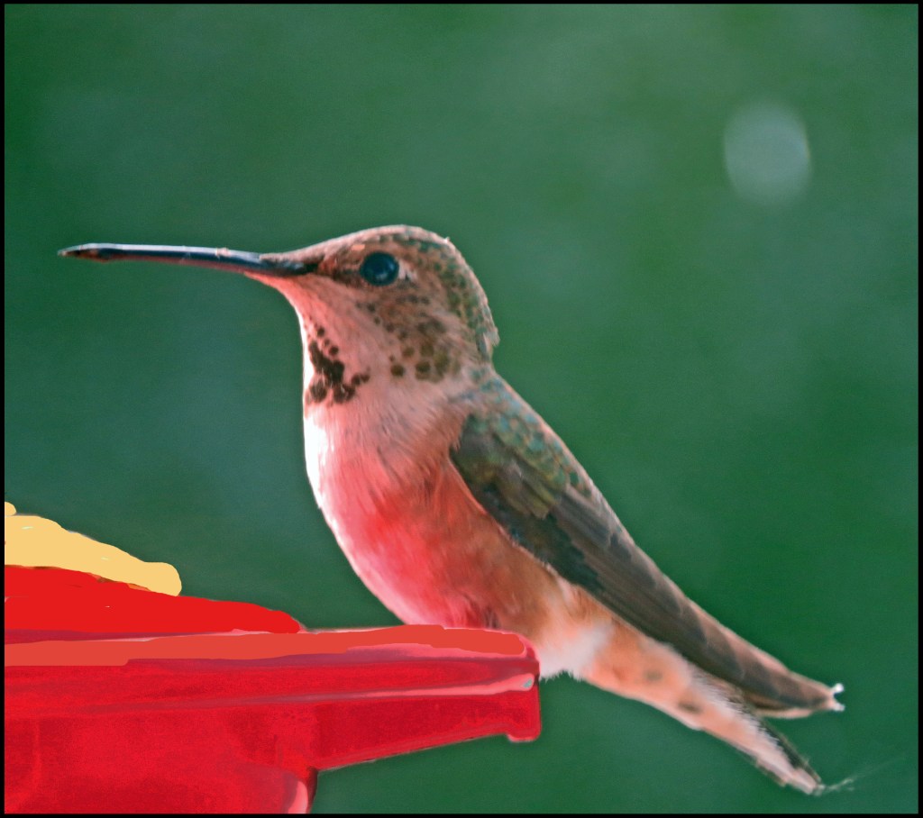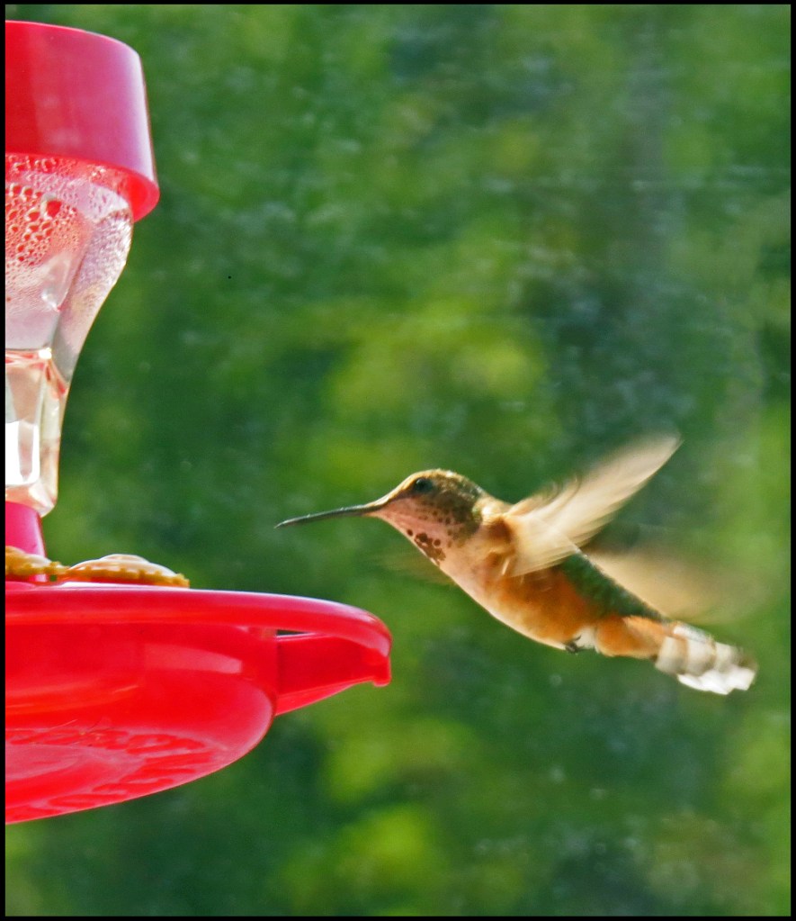 There haven’t been as many hummingbirds this year, but we did manage to lure this one in.