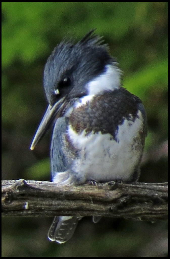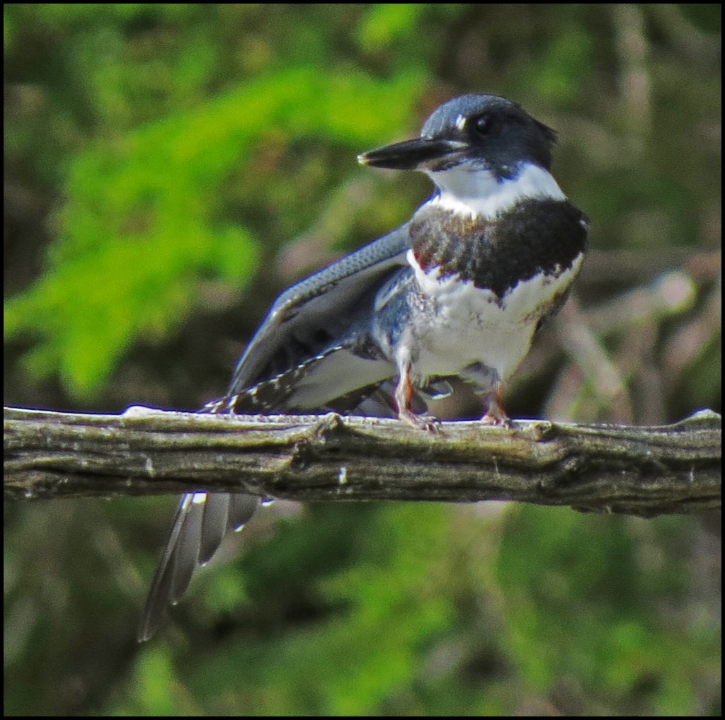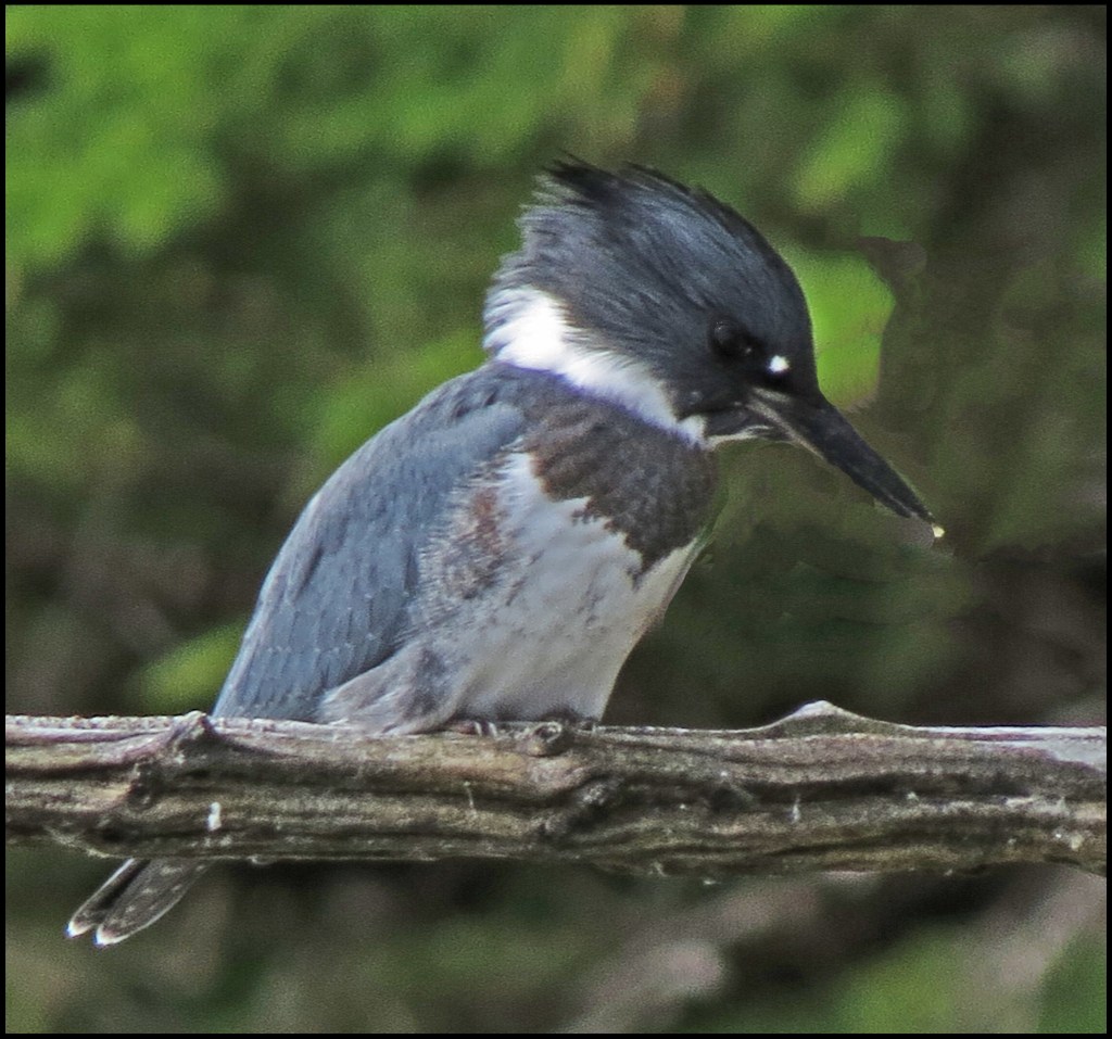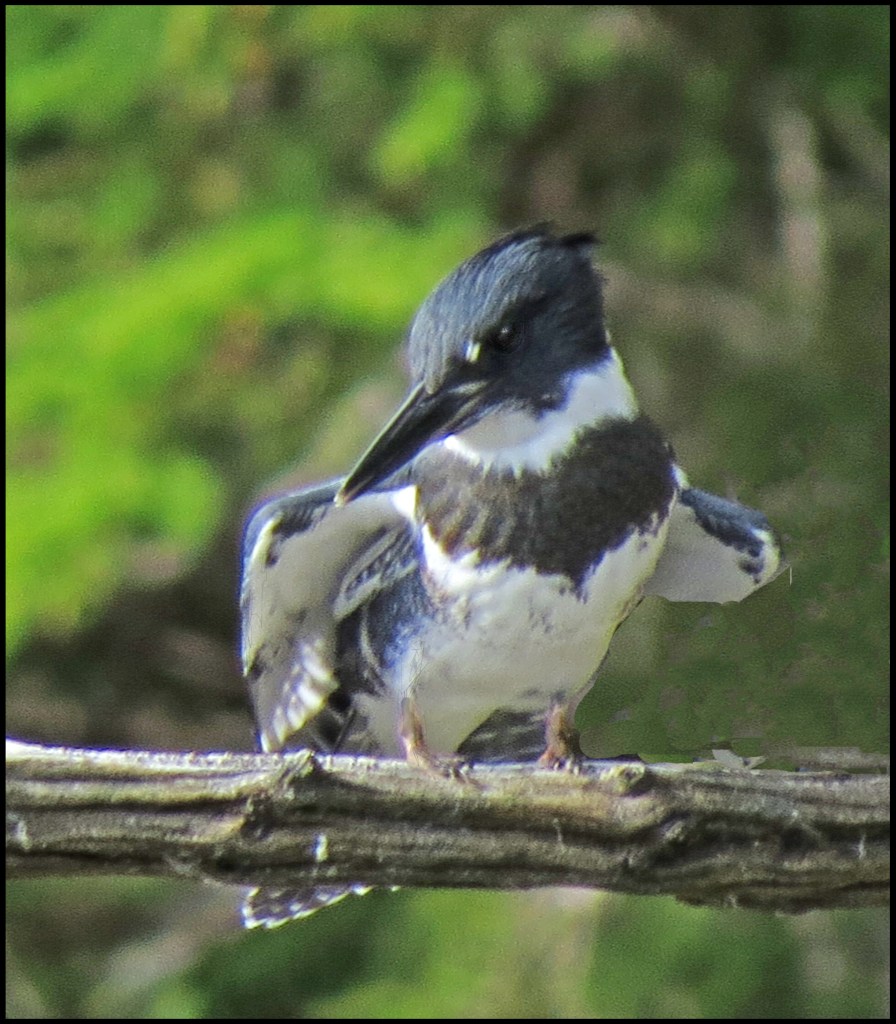 A kingfisher landed on a nearby branch, just passed the herons.