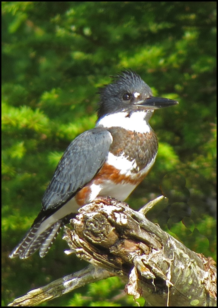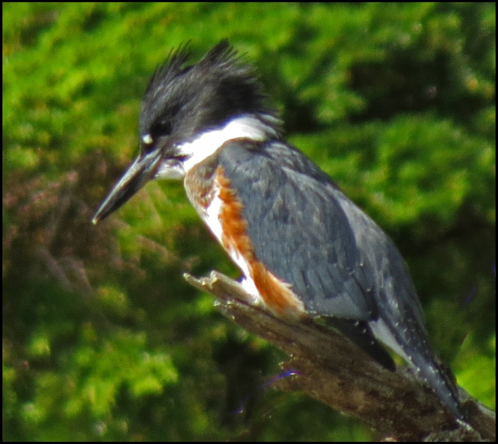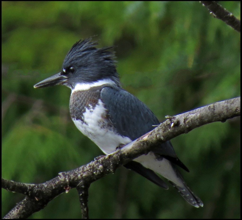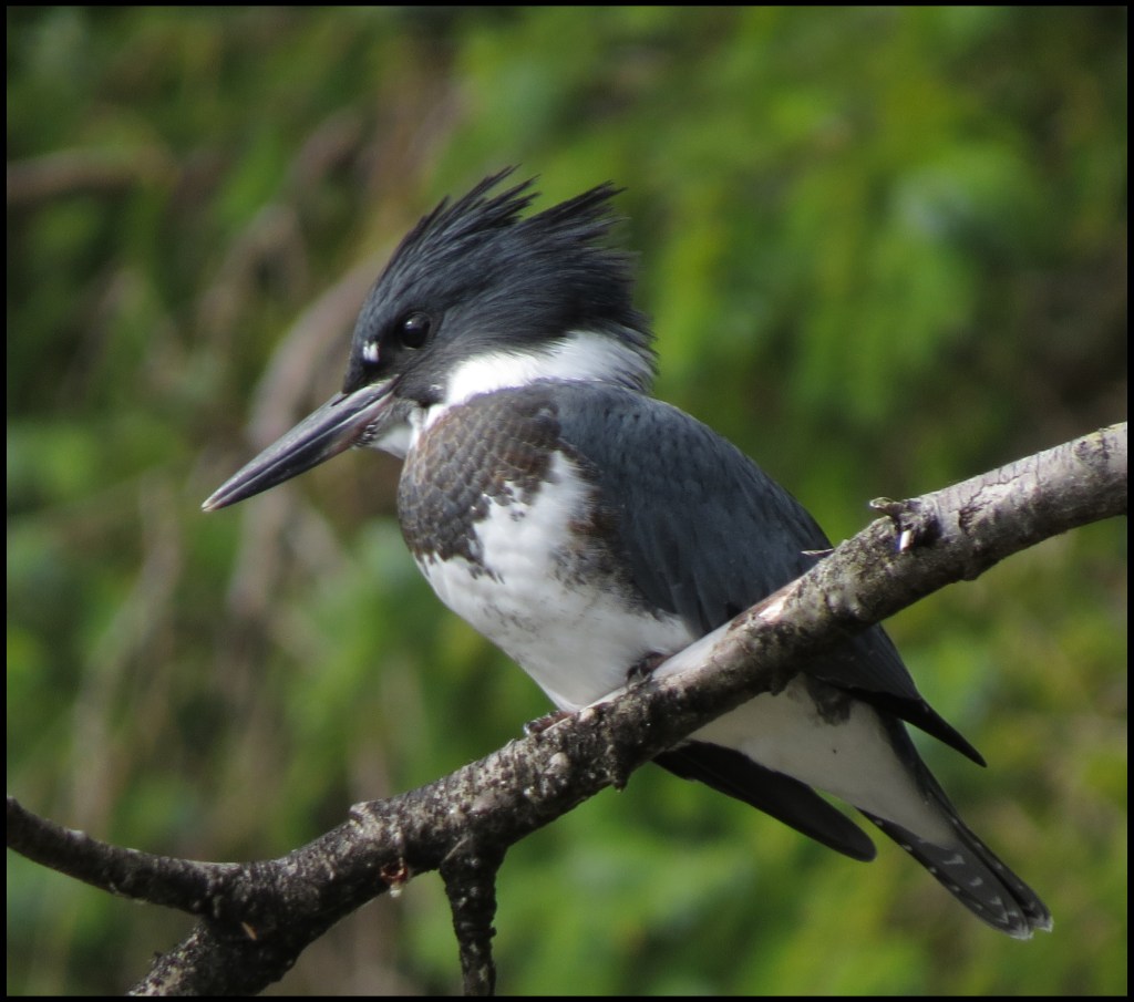 A kingfisher landed on a nearby branch, just passed the herons.