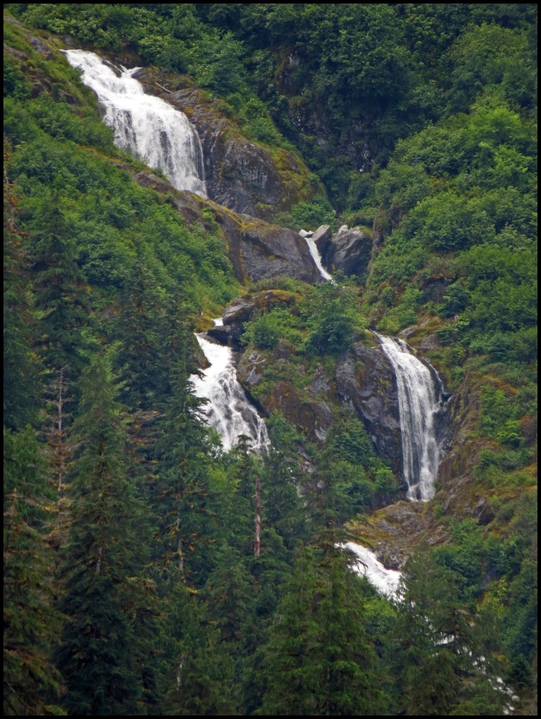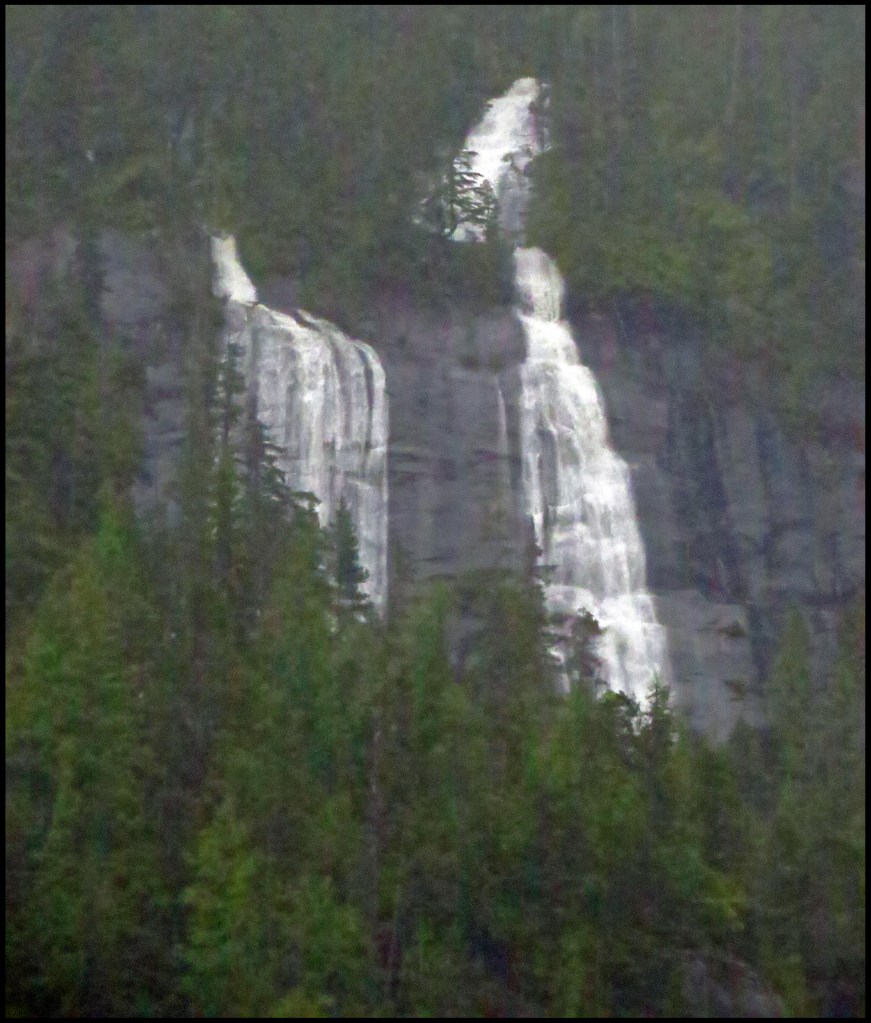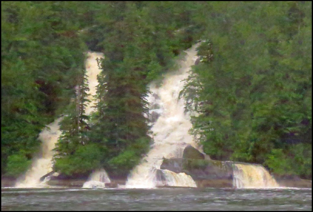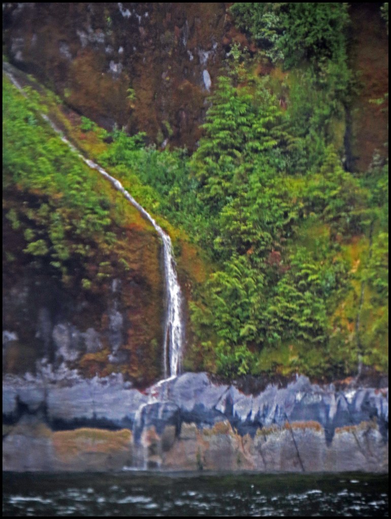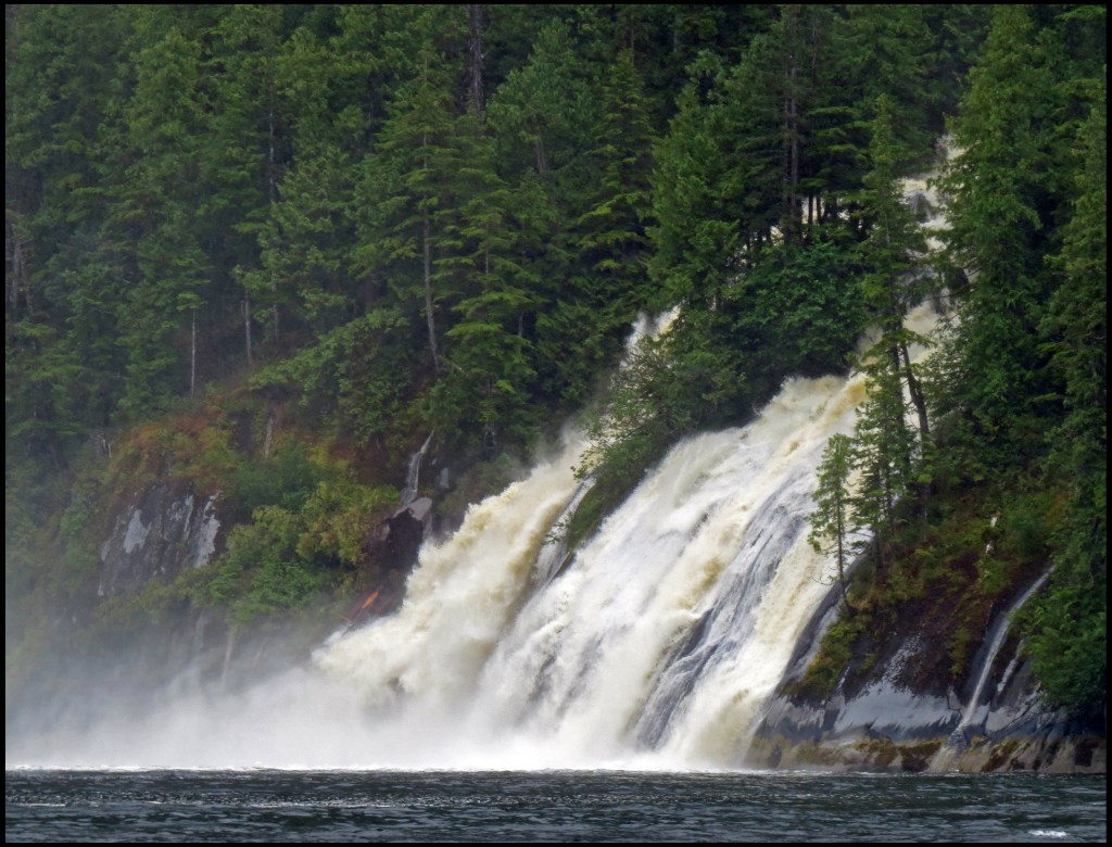 It’s still pouring rain as we pull the anchor, headed for Khutze Inlet.  All along the route there were incredible waterfalls.