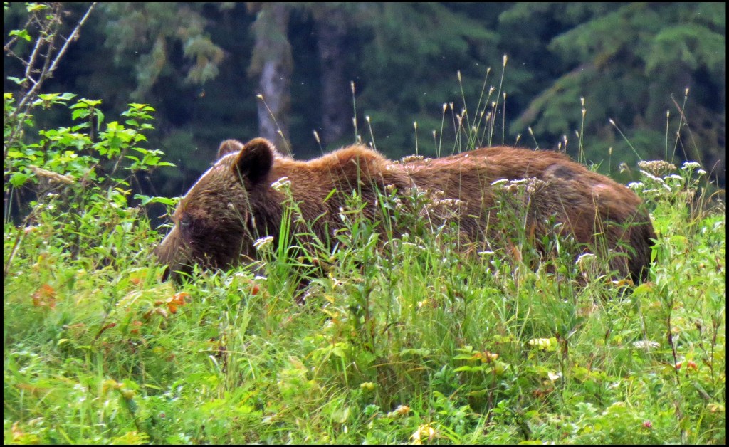 Just as the crows harrass the eagles, they also get on the nerves of grizzlies.  So, I’m thinking that was probably the case here.  I just happened to be in the wrong place when the grizzly had had enough of the pesky crows.