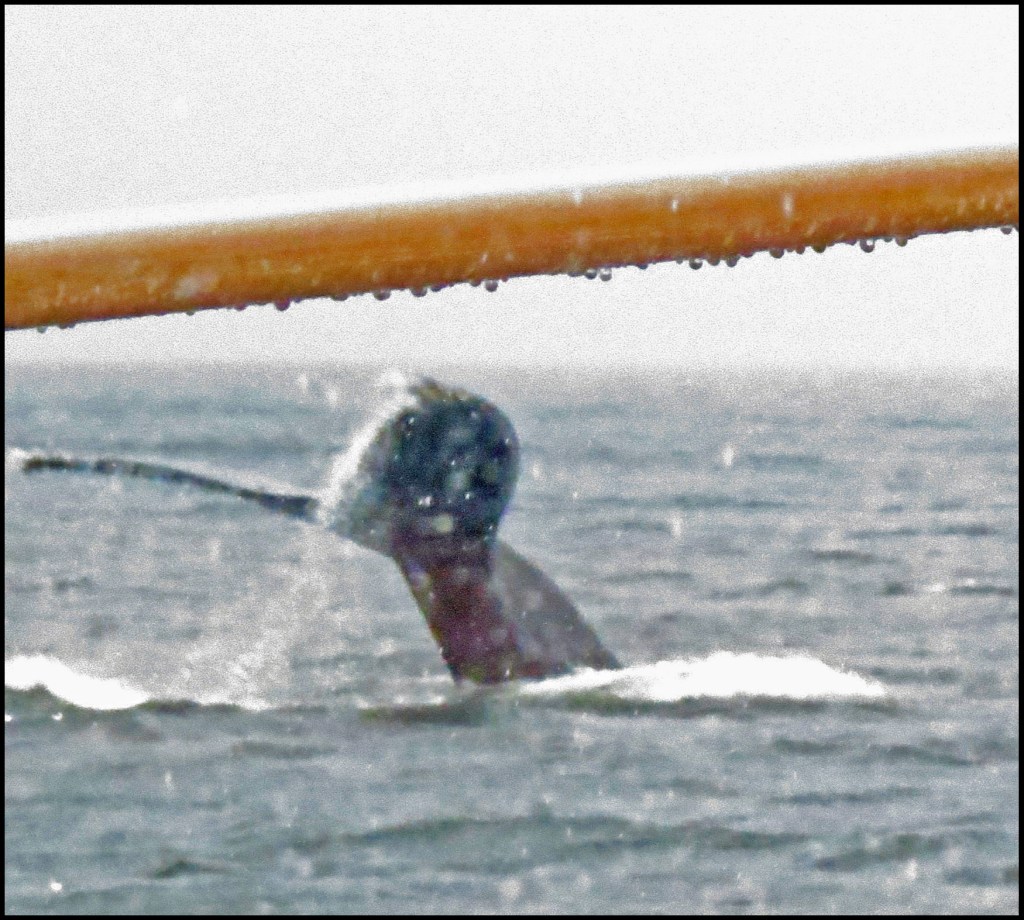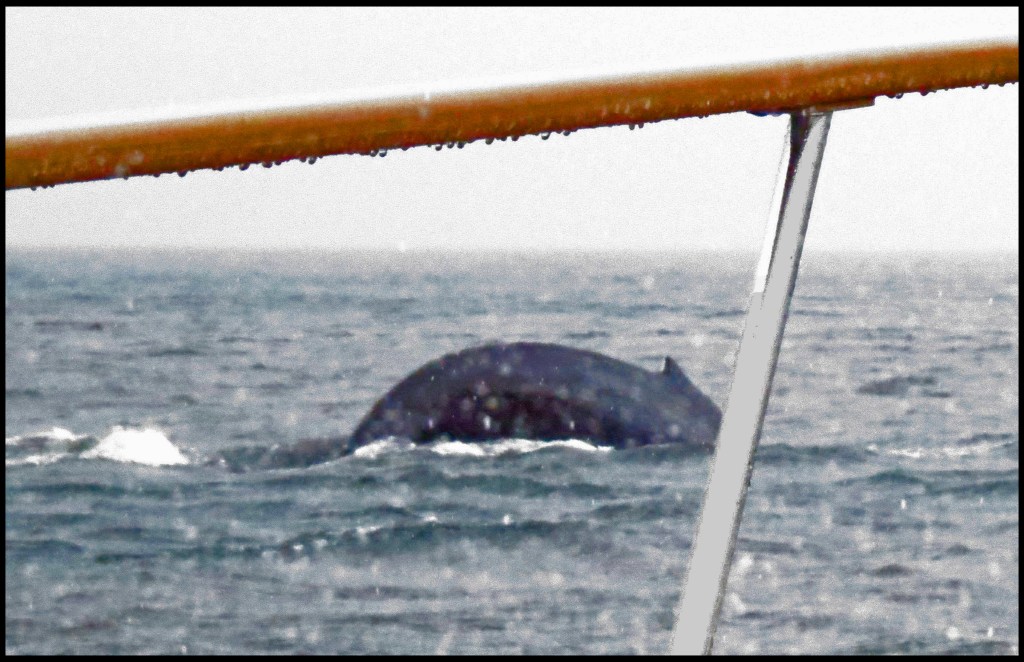 I was in shock, and there was no time to make any adjustments to my camera, so this is the best I could do before, with the flip of his tail, the whale was gone.