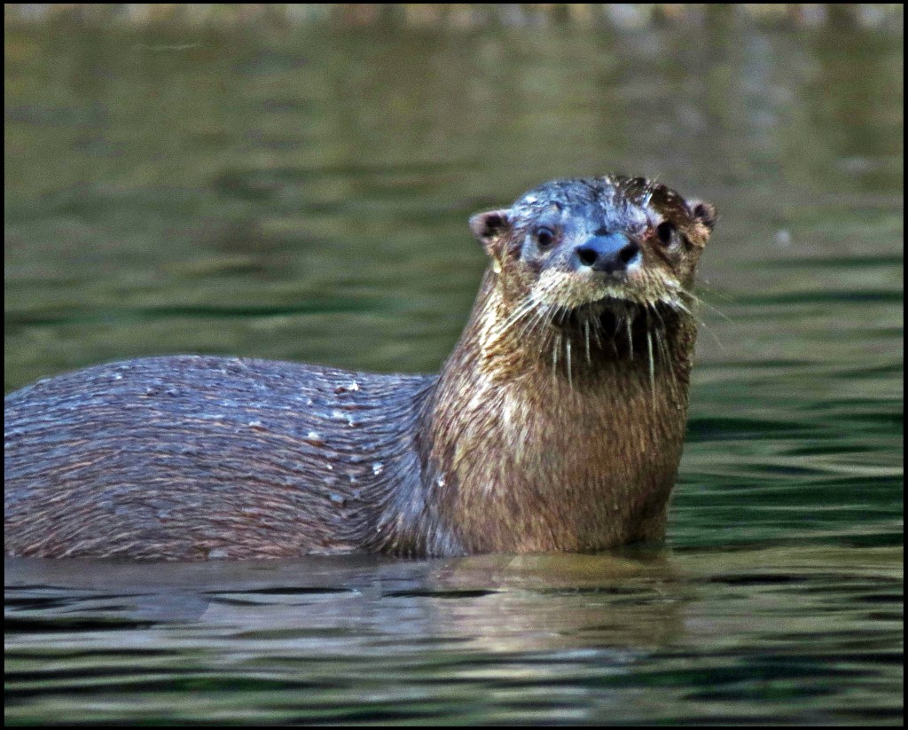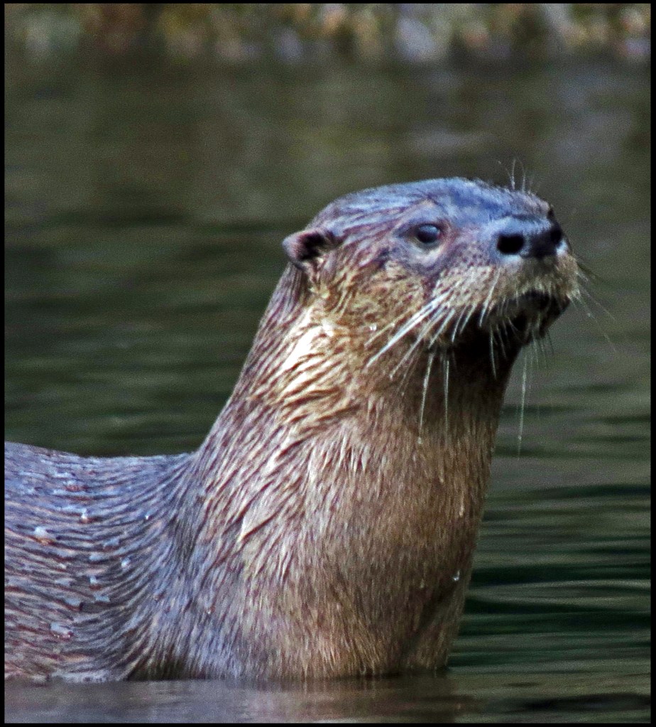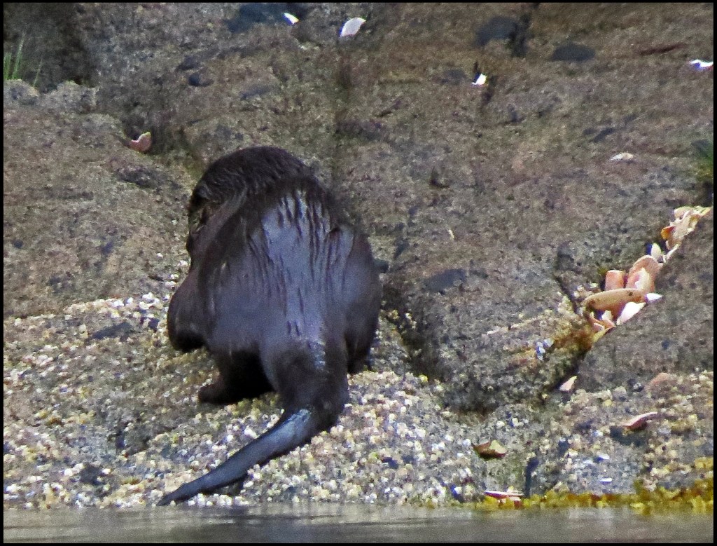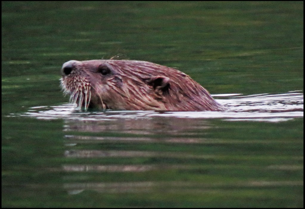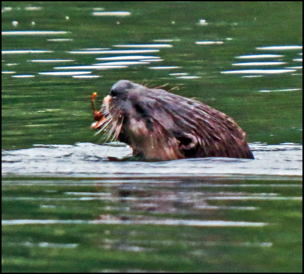 It’s still raining this morning as I set out on my paddle.  Very near the boat, I spotted a family of otters splashing about.  They always seem to be having great fun.