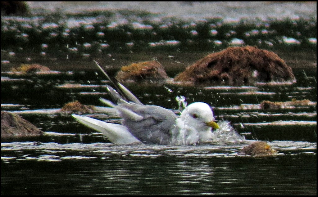 The low tide had created a little pool where seagulls were enjoying their morning bath.