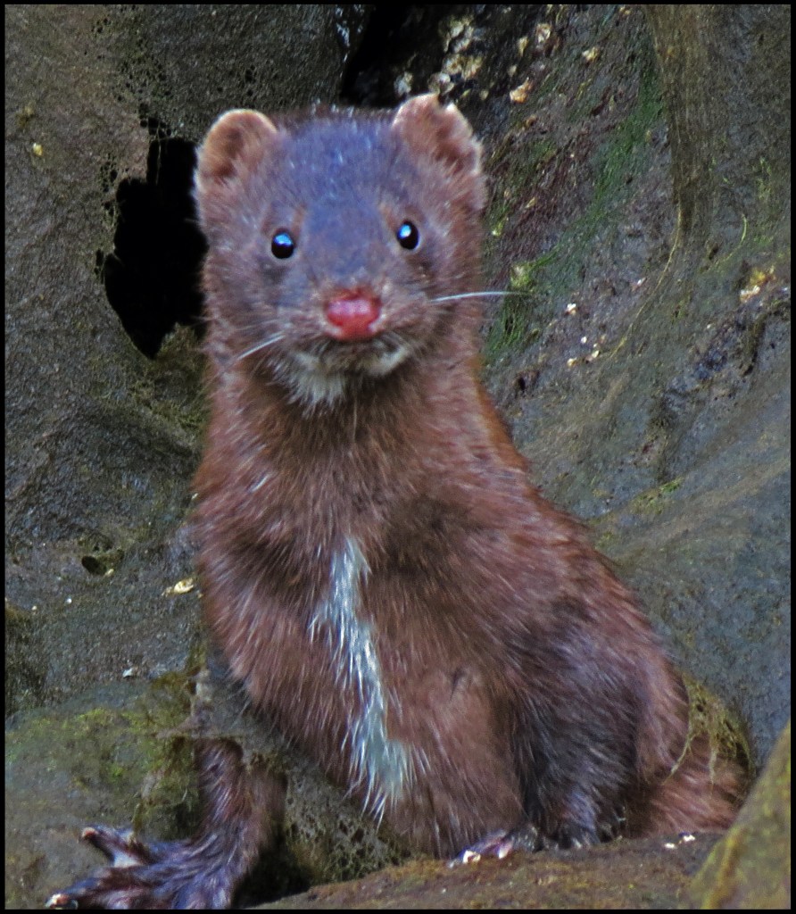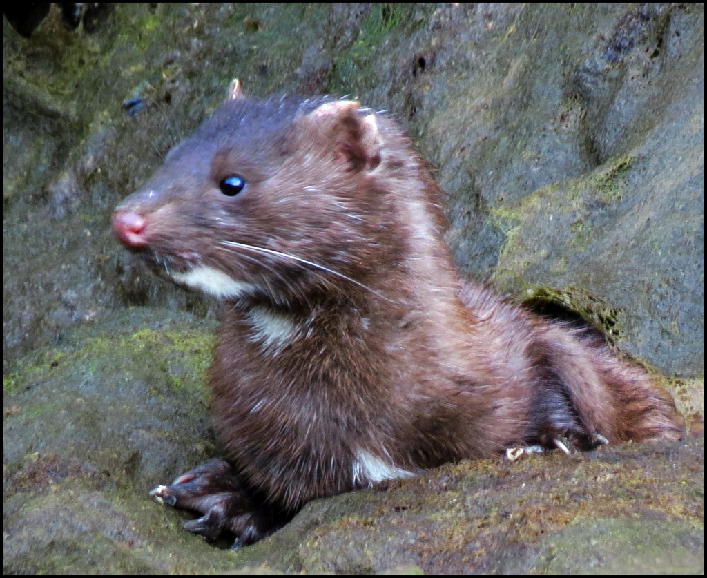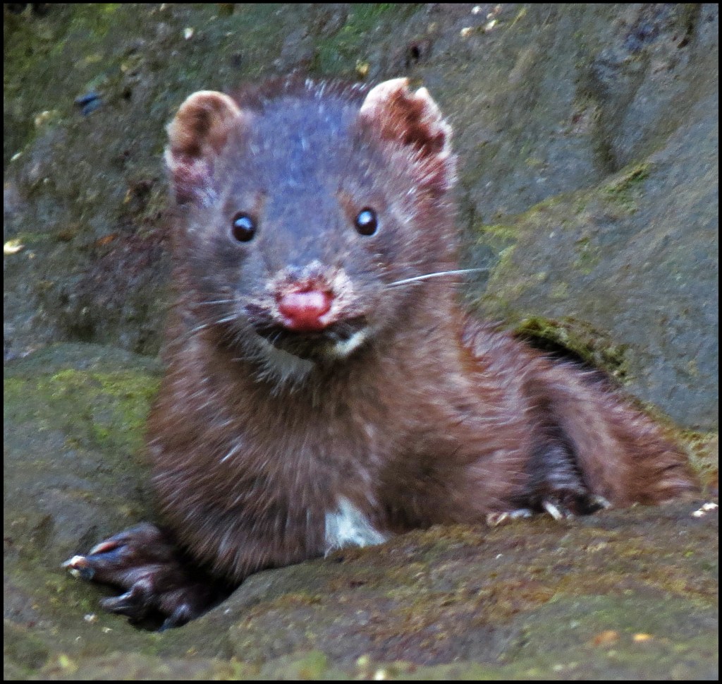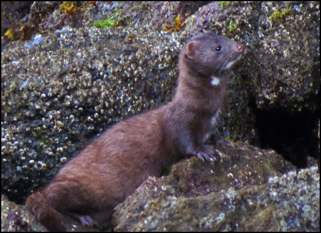 As I hugged the shore, where the current wasn’t as swift, I spotted a mink scouring the rocks for goodies.
