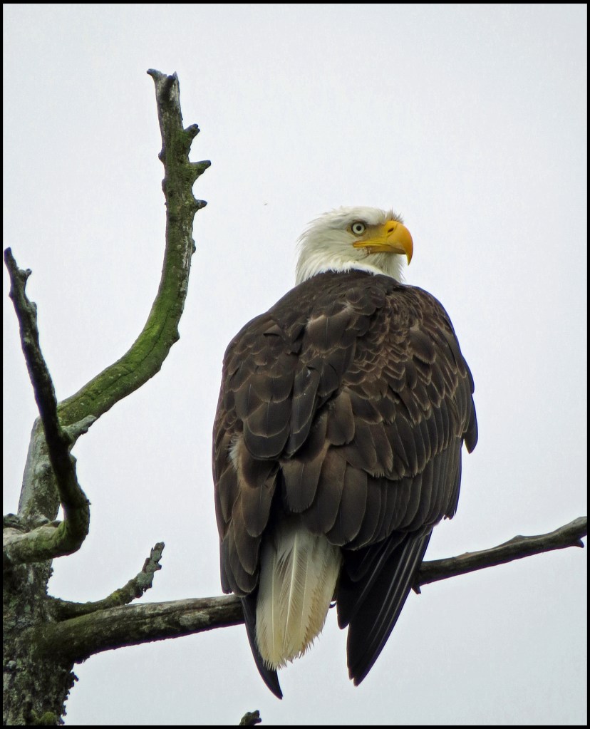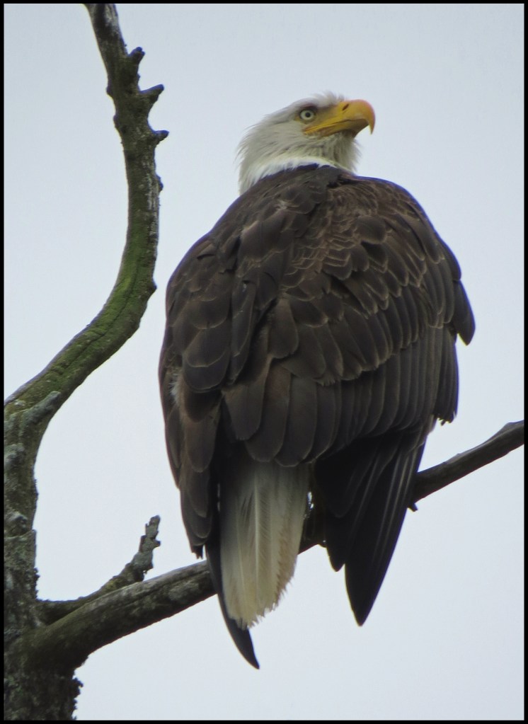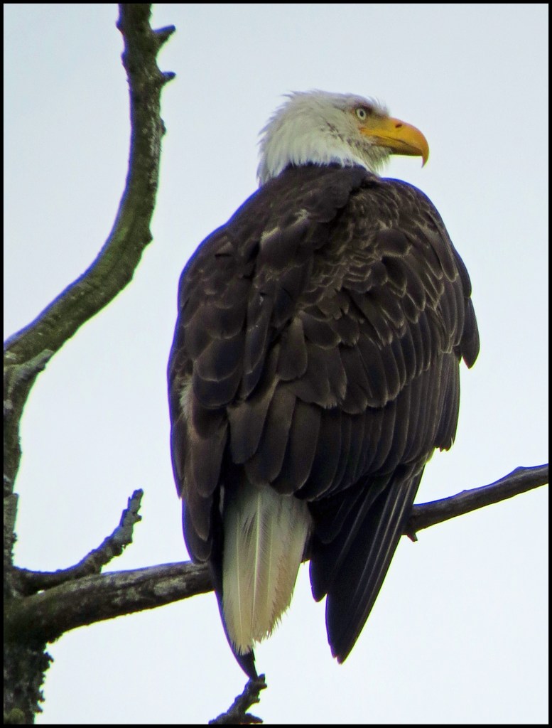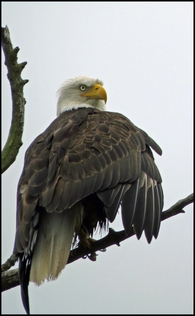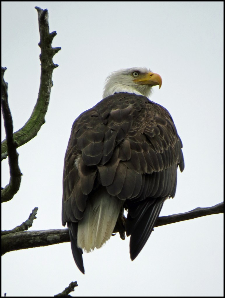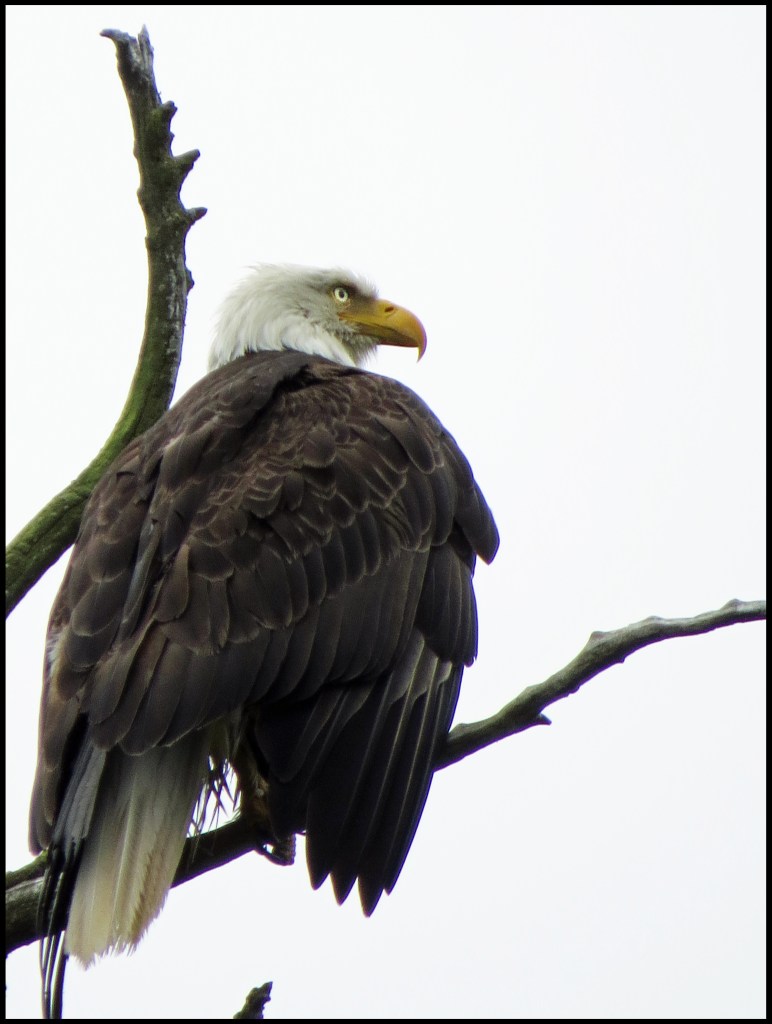 Ominous rain clouds were approaching, so I had to cut my paddle short.  But, before I turned around, I spotted this eagle way up in the top of a tree.  It was a long shot, but I took it anyway.