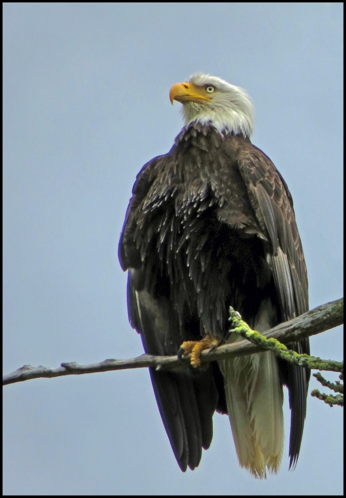 So, I headed back out to the little islets that dot the anchorage, where I discovered this eagle trying to dry out from the rain.