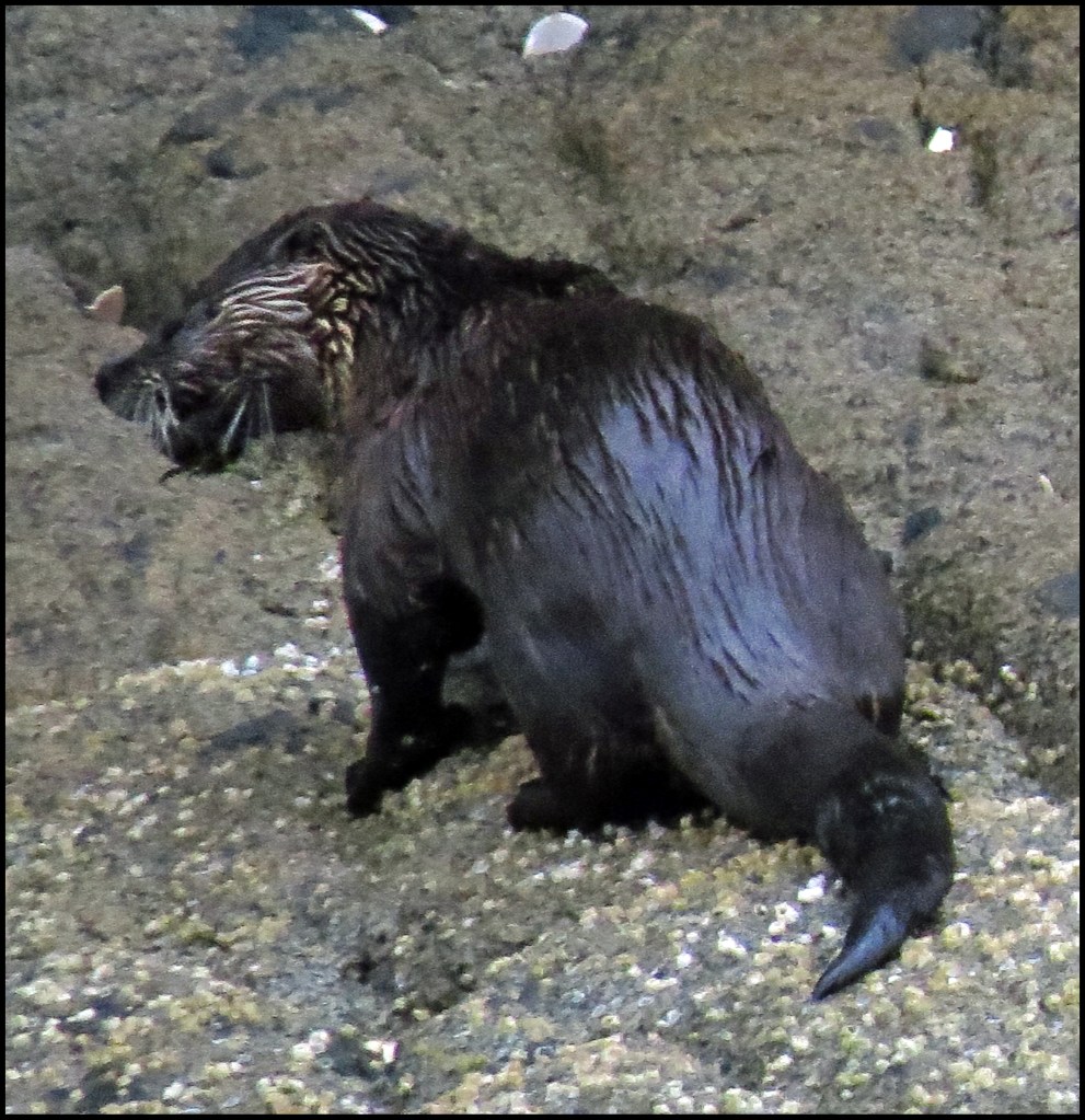 Although I’d need a spring tide to get very far up Pyne Creek, low tide is the best time for finding wildlife. So, at low tide, I decided to check out the drying flats. I didn’t have to paddle far to find a pair of river otters fishing for breakfast. Judging by their size, I’d say they’re catching their fair share of fish.