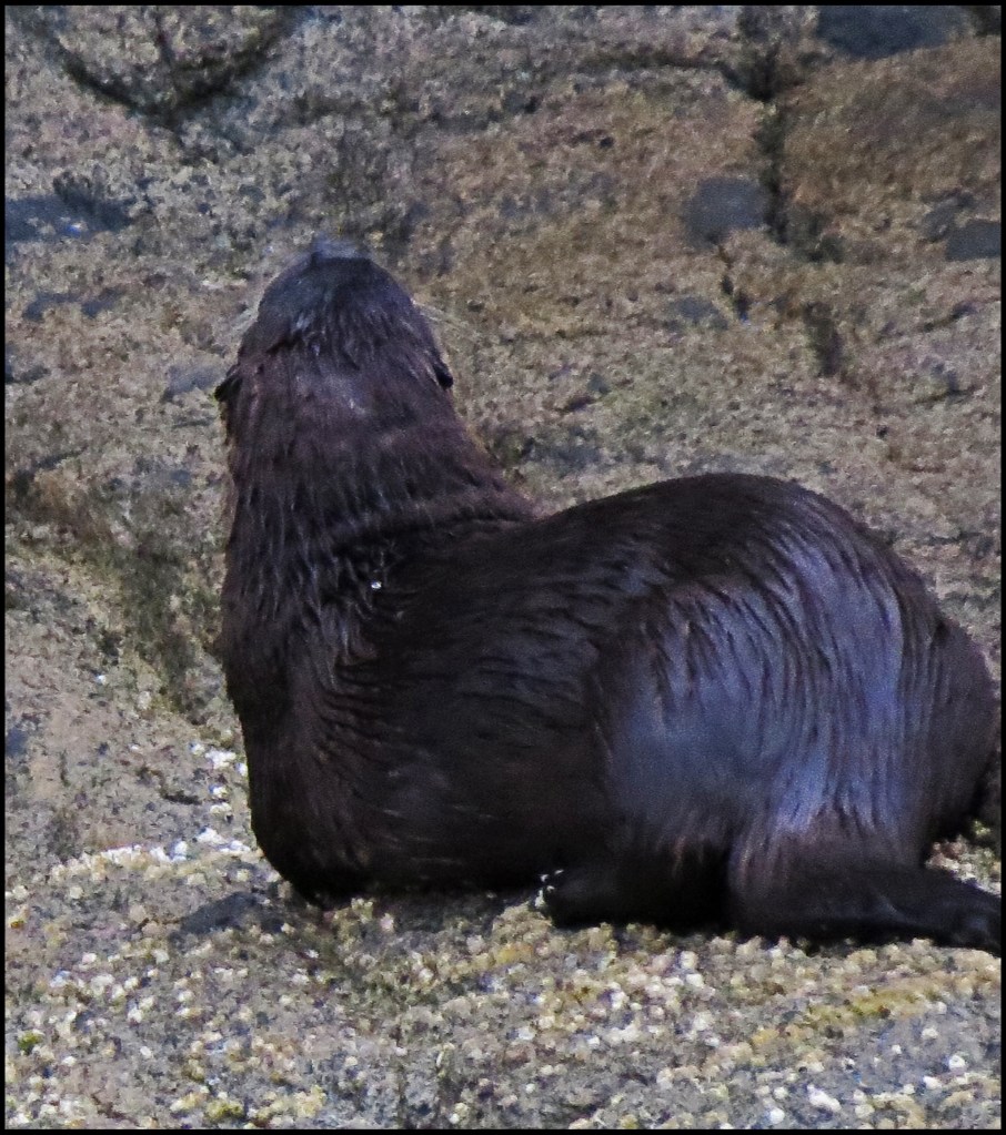 The otters hauled out on a nearby island, and quickly disappeared into the trees.