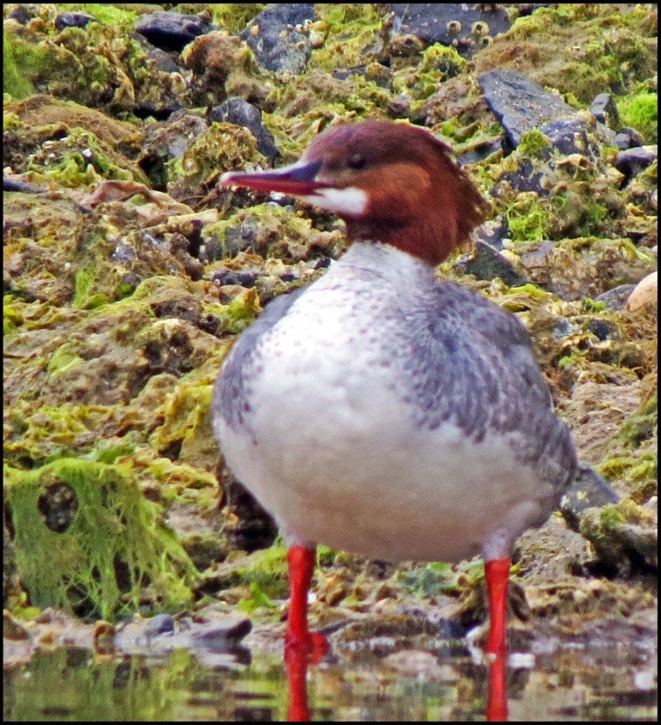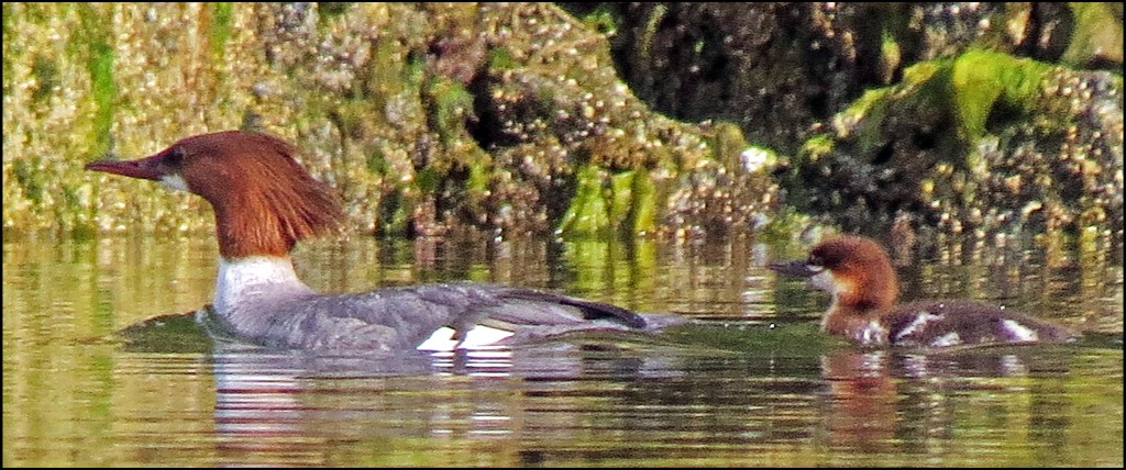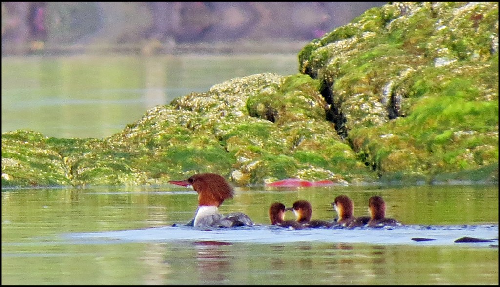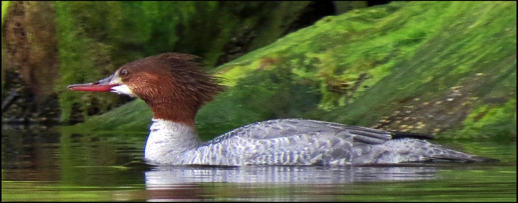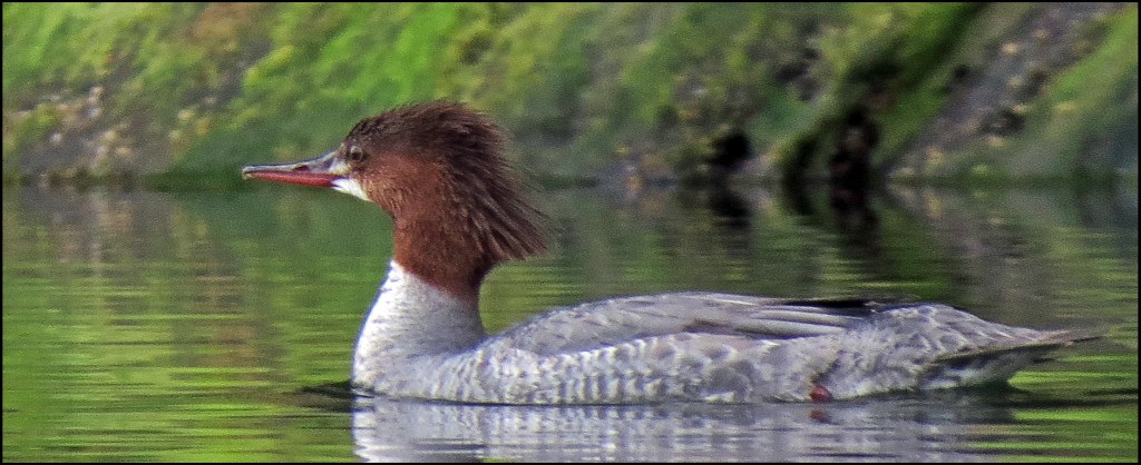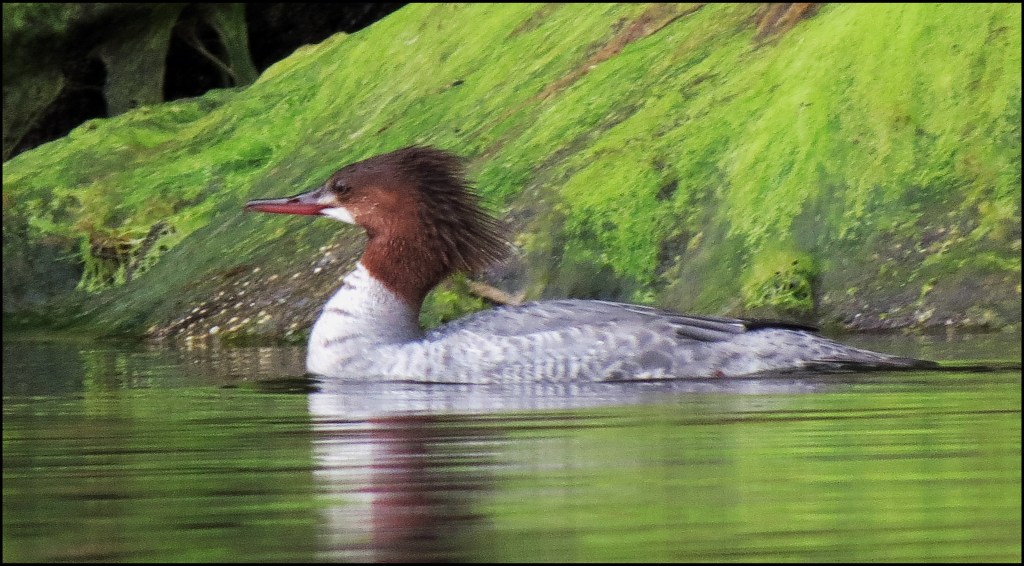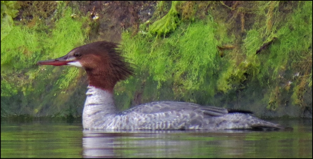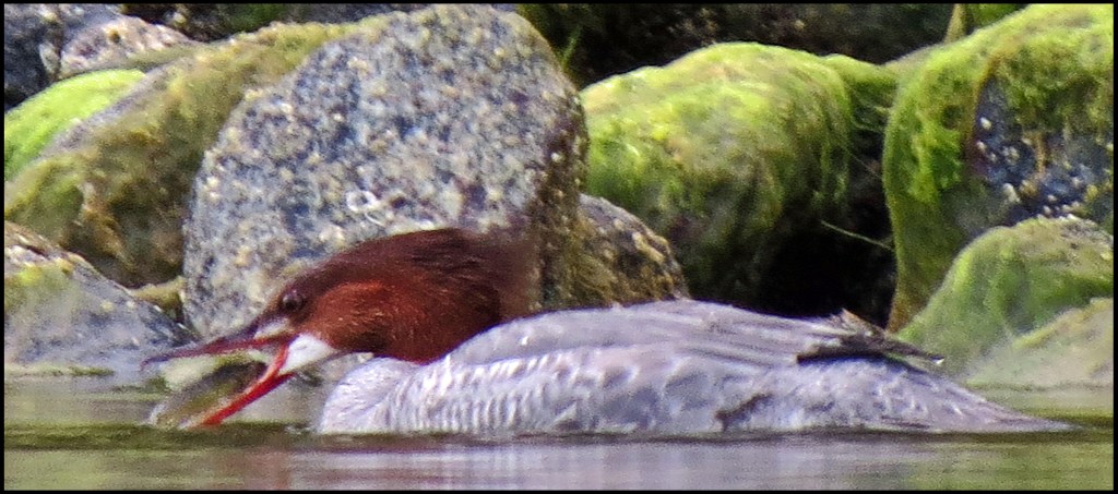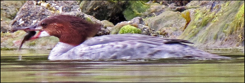As I paddled along the shore, headed for the rocks at the entrance, I found this merganser fishing.