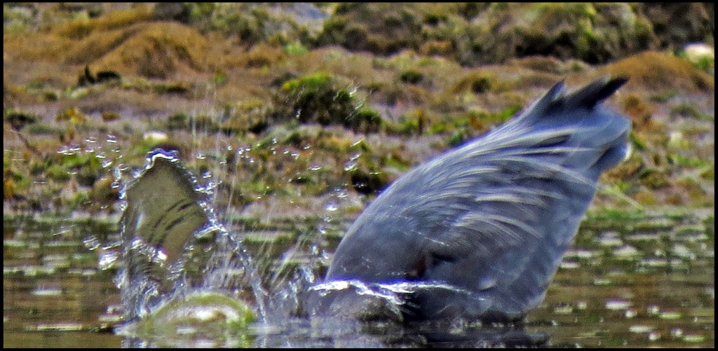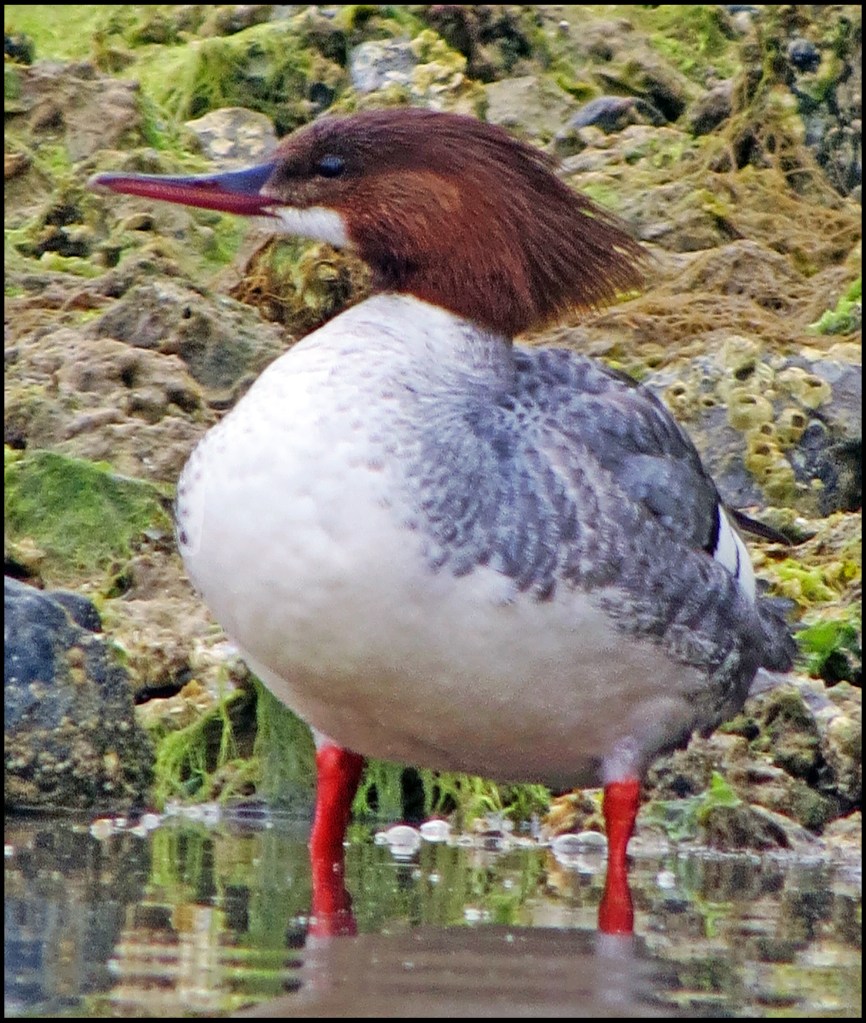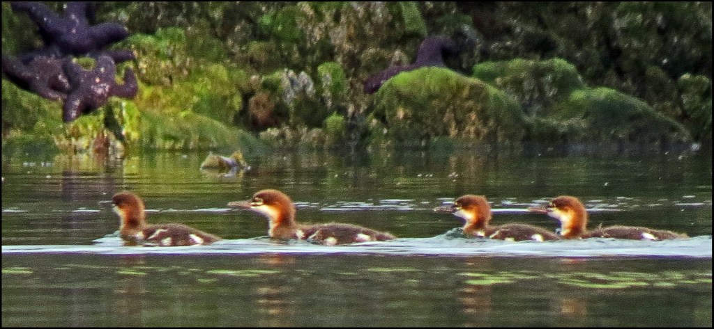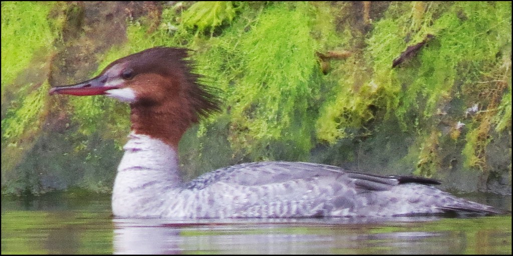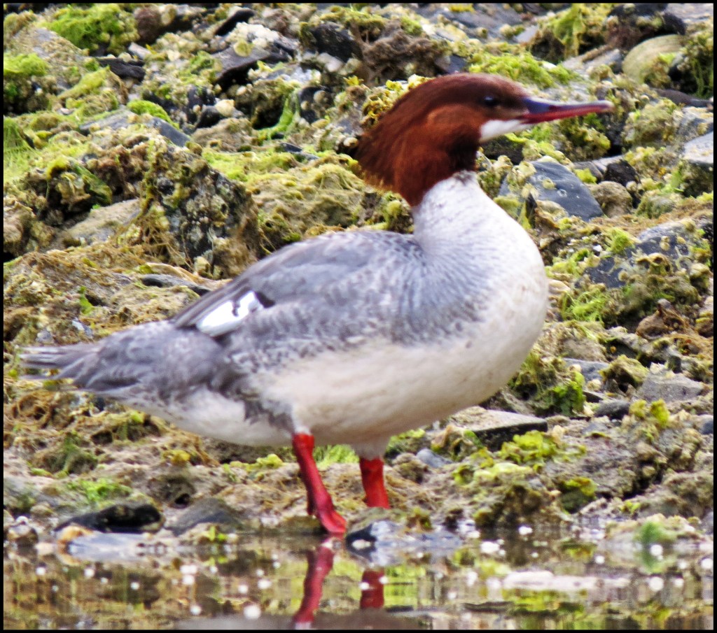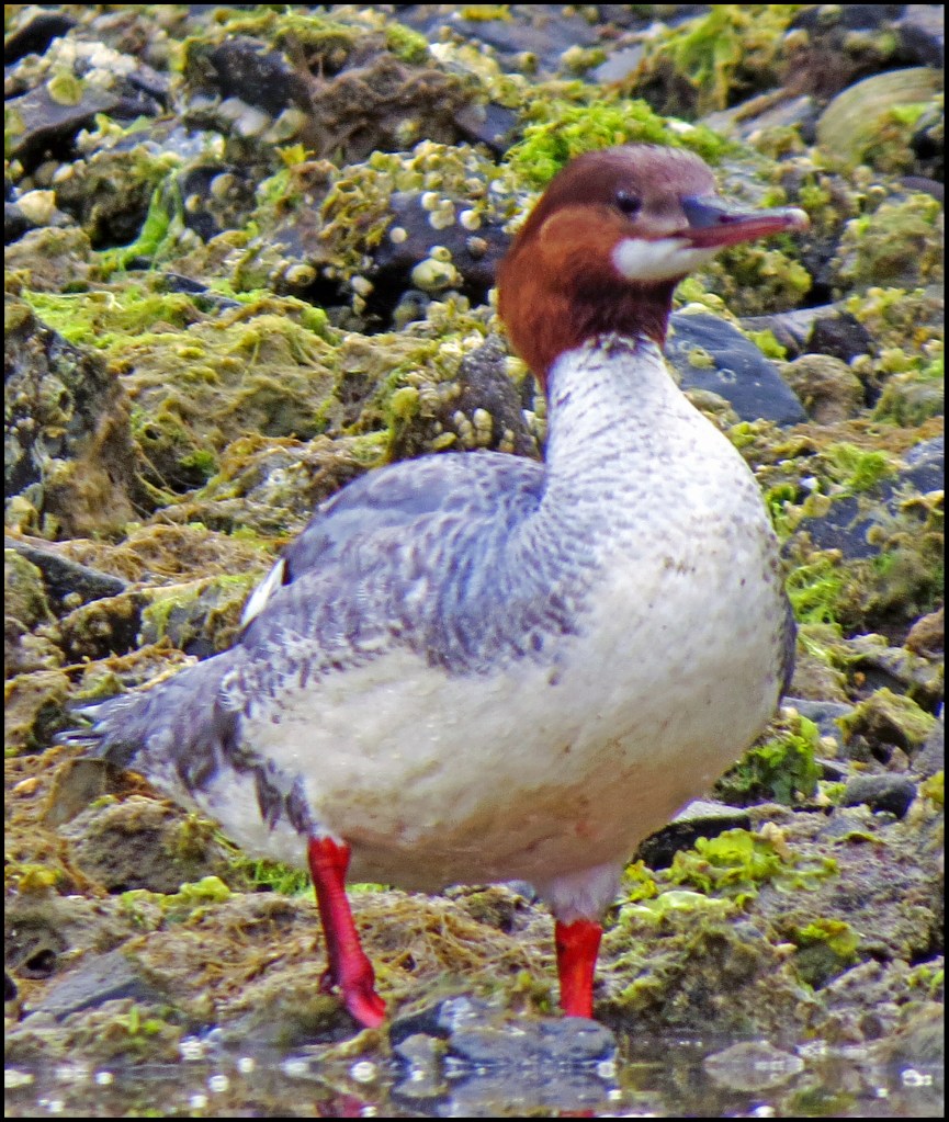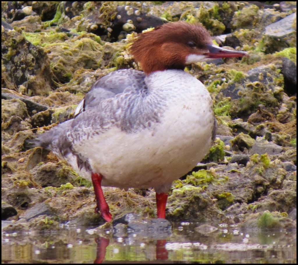 As I paddled along the shore, headed for the rocks at the entrance, I found this merganser fishing.