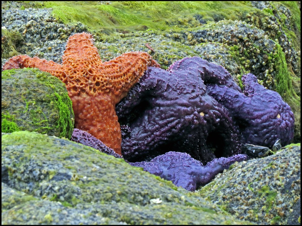 After breakfast, Al went out to set the prawn trap, and I went for a paddle.  There’s a spring tide today, so I was able to find lots of sea stars.