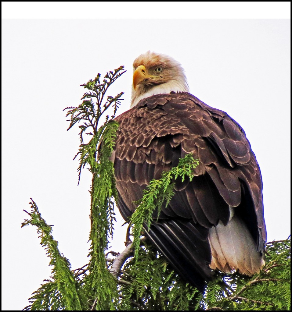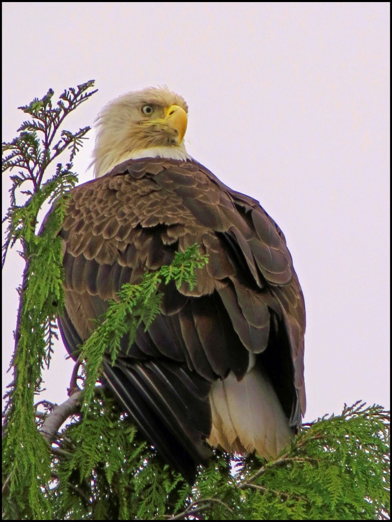 By now, it was 1000 hrs and I hadn’t had breakfast yet, so I headed back to the boat.  I spotted this eagle so high up in a tree that I had to get almost directly under him to get close enough for a shot.
