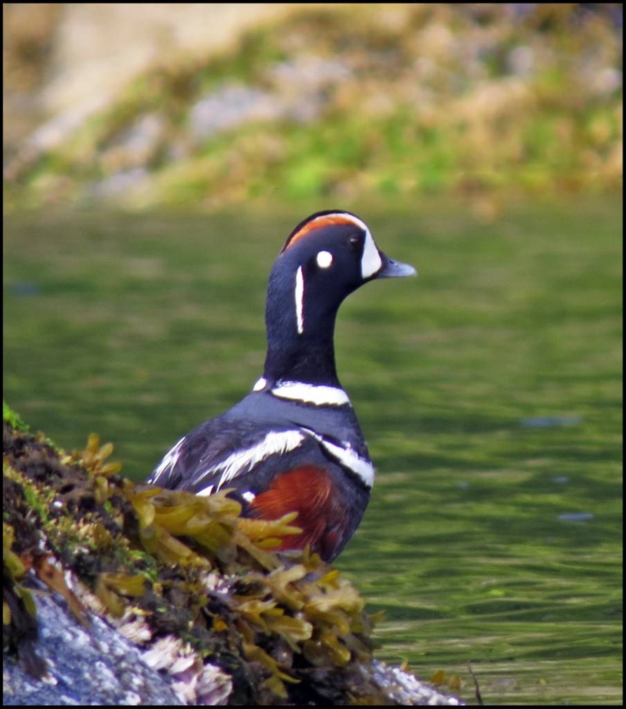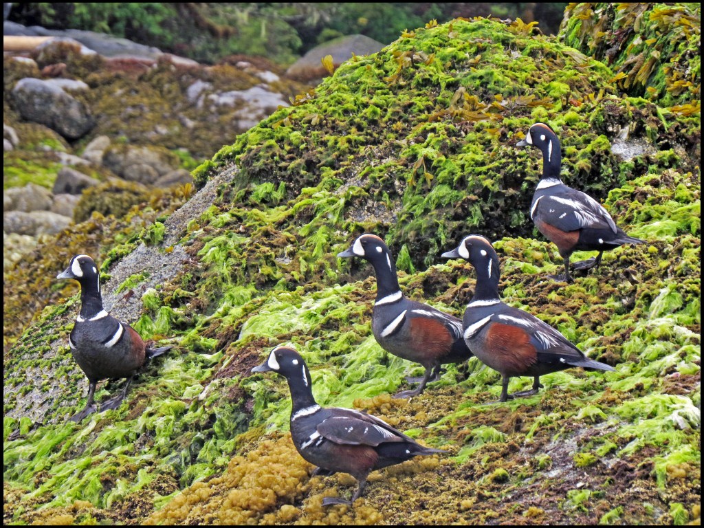 It rained every day, off and on, so I wasn’t able to get out paddling much. However, I did manage to get some shots of harlequin ducks.  I was so happy to see that the harlequin ducks are still hanging out at Kwakume.  Everyday I found them feeding out by the entrance.  They feed on crustaceans, like mussels, barnacles, chitons and crab.