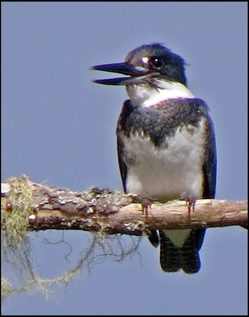 On my way back to the boat I heard the chattering of a kingfisher.  I finally spotted him way up near the top of a tree.  He was really carrying on.