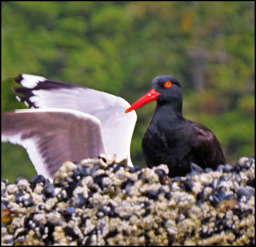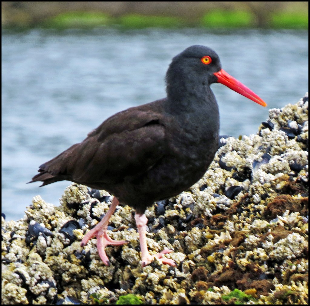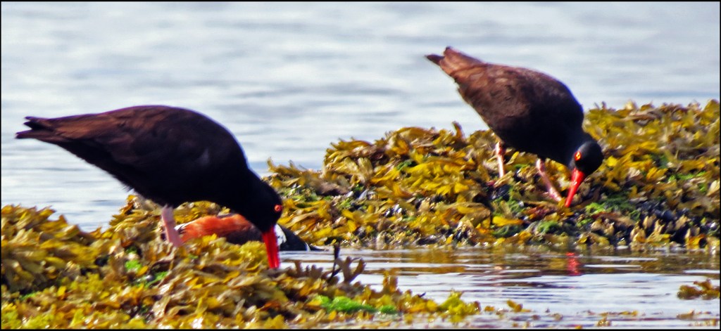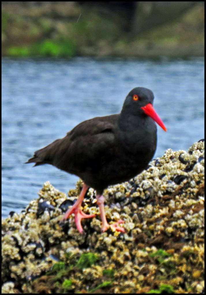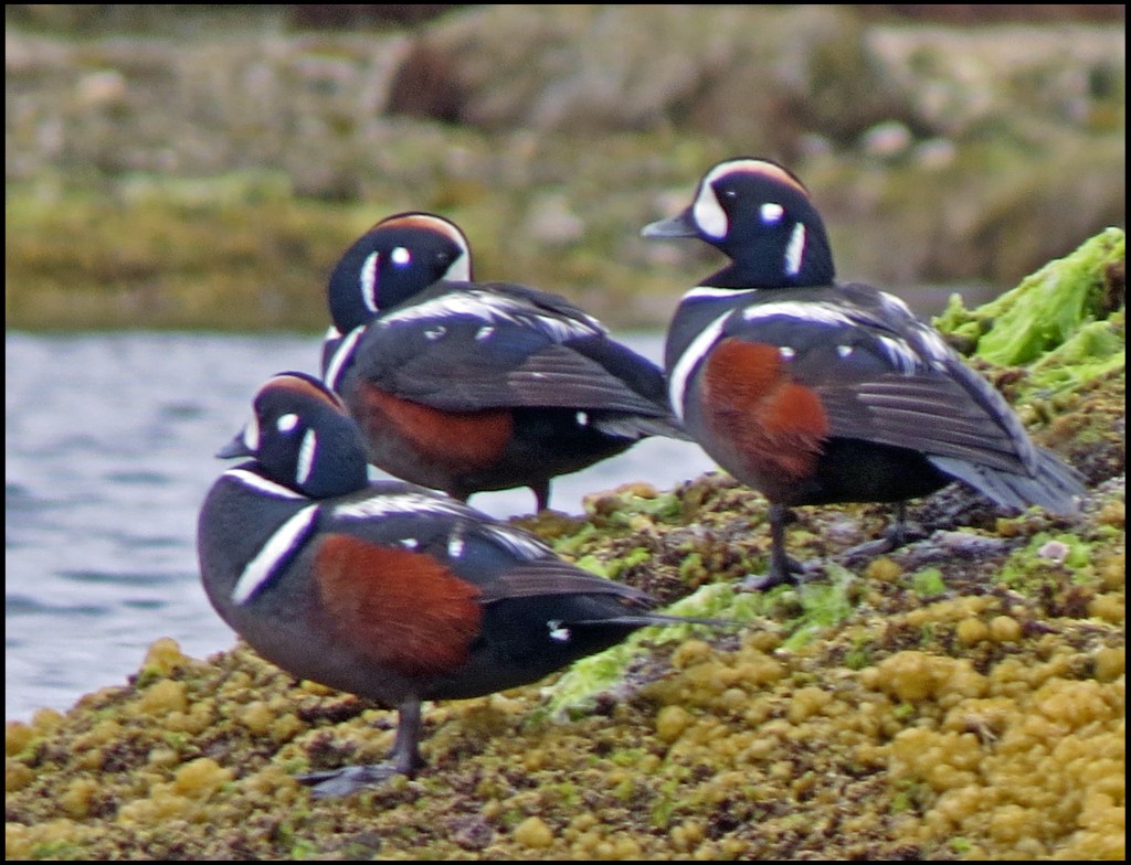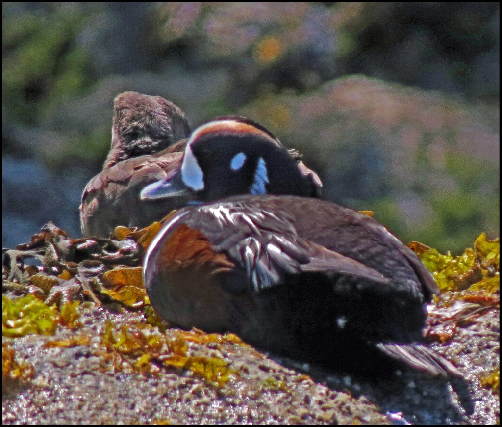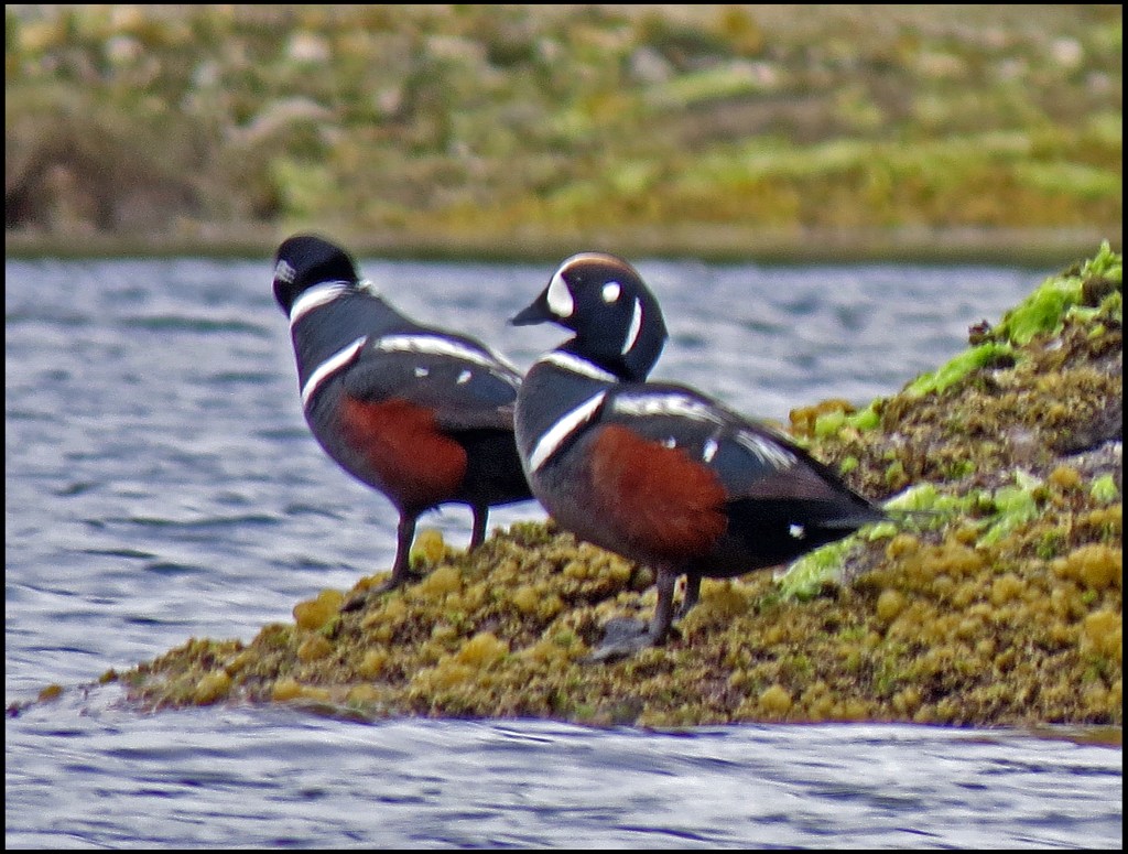 As close as I was, I was sure I’d be able to get more shots of the mink, once he was up on the rock, but he hit the ground running and I never saw him again.  So, I continued on to the rocks at the entrance, where I found more harlequins and oystercatchers.