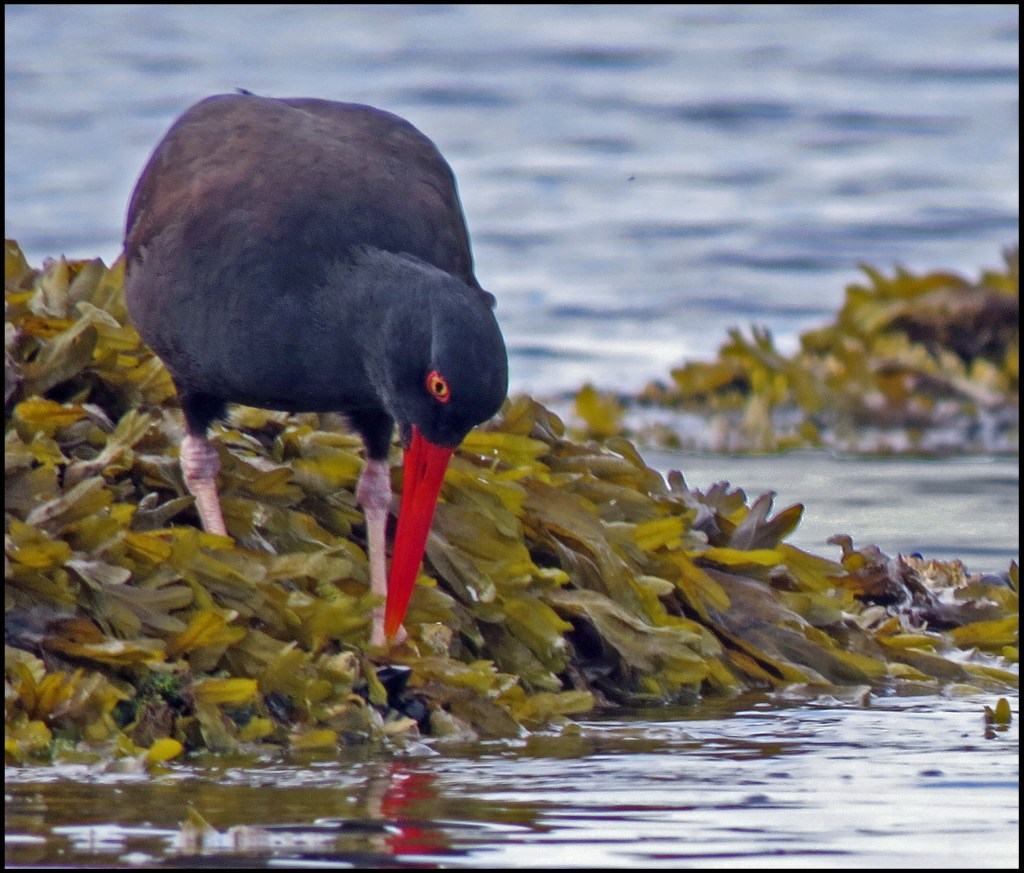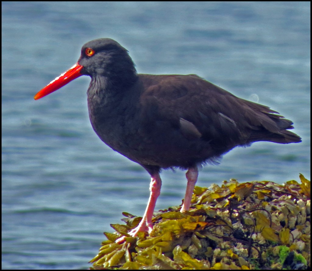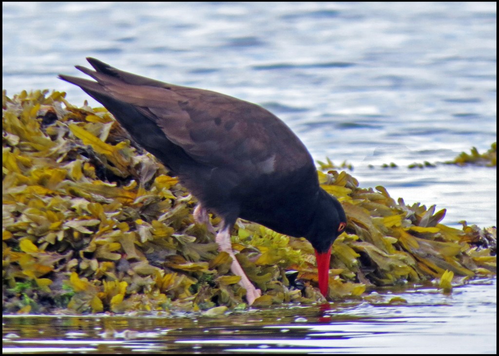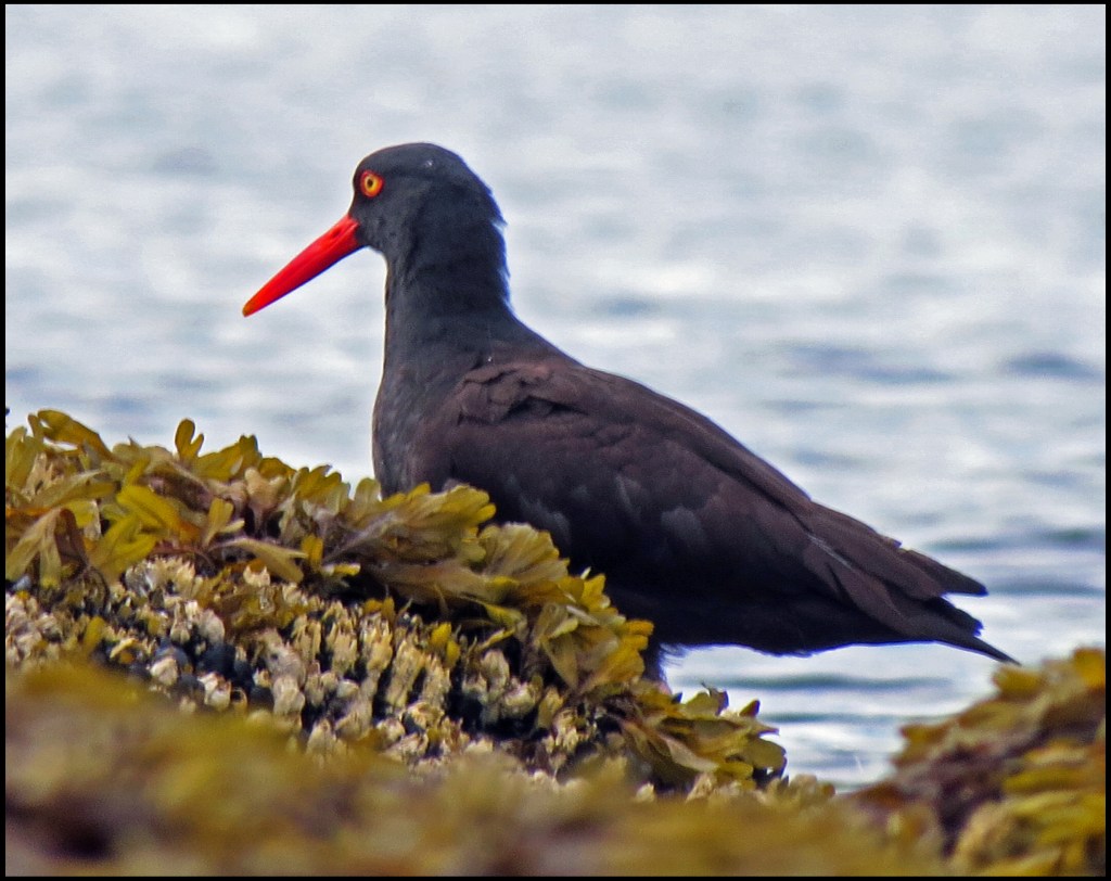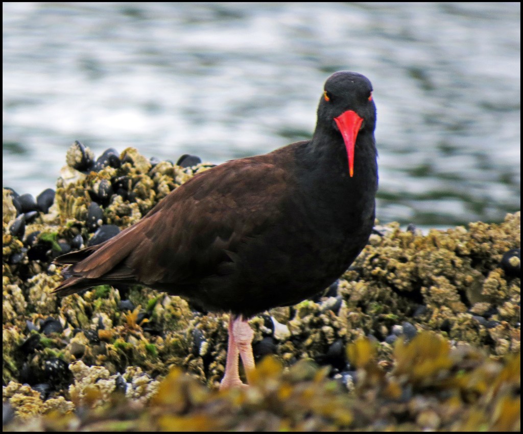 I headed for the rocks that dry at low tide.  This is where I found harlequin ducks and black oystercatchers last year.  Well, apparently it’s still one of their favorite hangouts.  The wind had come up, so I was having to paddle upwind, drift down to where I could get a shot as the wind carried me by, and then paddle back upwind to try for another shot.