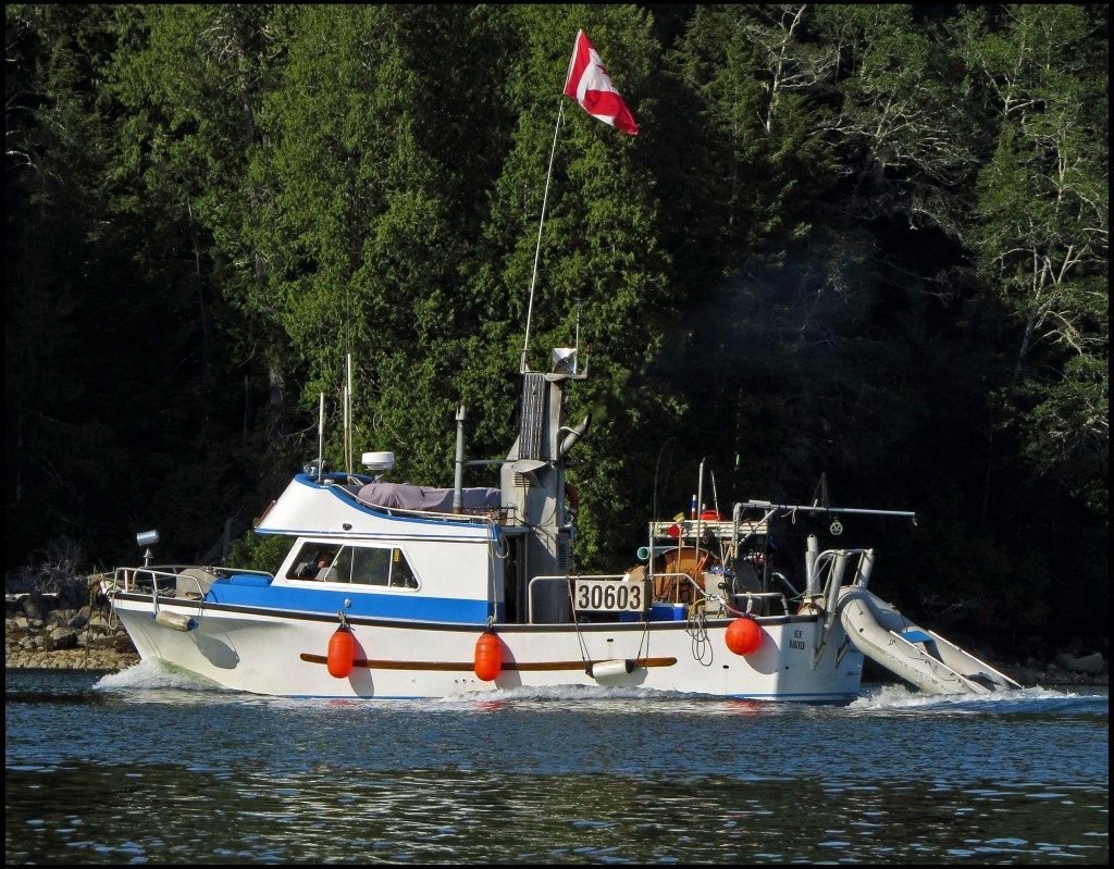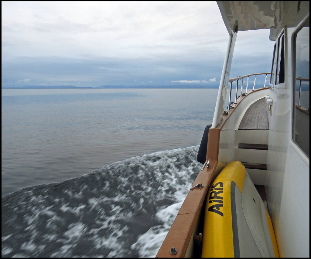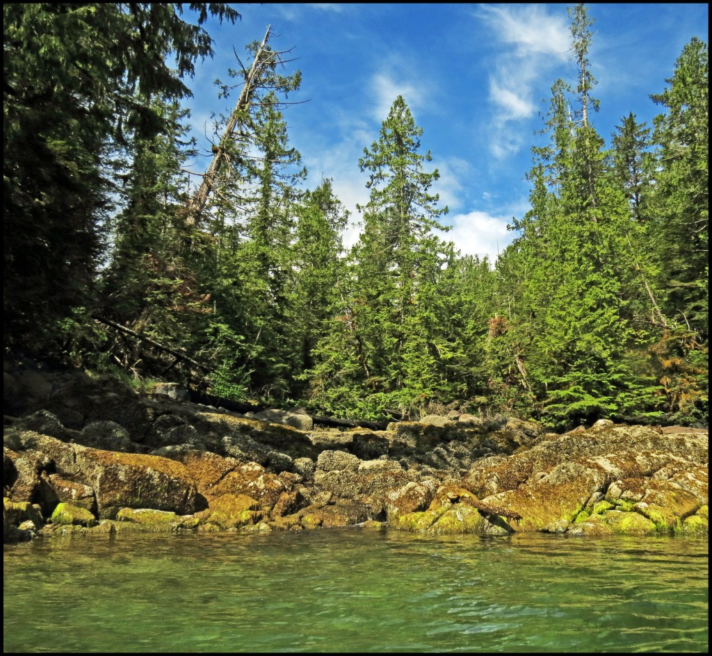 The blue skies are back this morning, and the sea is flat calm in the anchorage. By the time I have breakfast and get suited up to go paddling, the wind has picked up outside the anchorage and the trees are dancing pretty good. Now, the anemometer is reading 5 knots, gusting to 12 knots inside the anchorage. I convince myself that since there aren’t any rain clouds around, the winds will probably fill in at 10 knots. So, off I go. But today, I headed in the opposite direction, just in case the wind does pipe up, I’ll have it behind me.