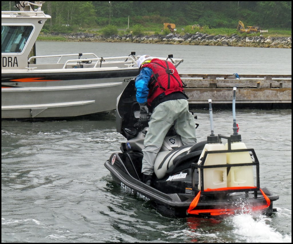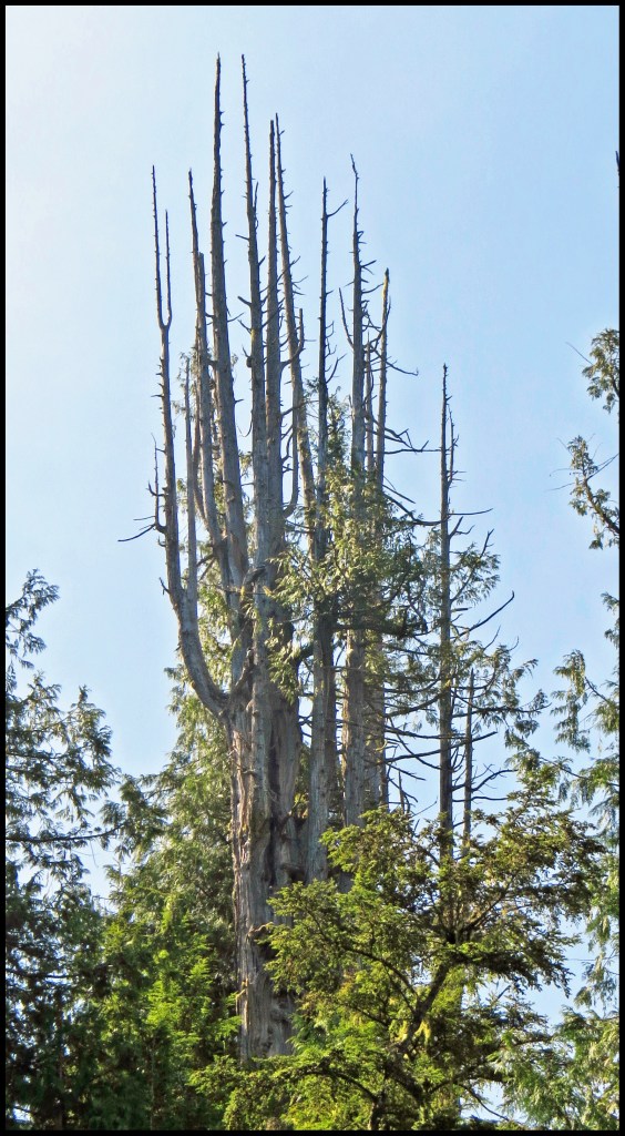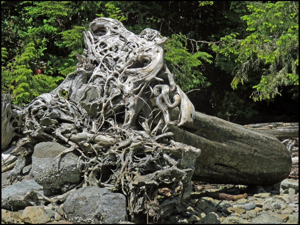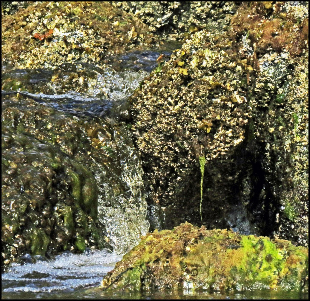 I paddled all around the shoreline of Green Island. I discovered quite a few small areas of sand and eel grass, which Dungeness crabs like. We’ll have to try crabbing here next year. And, there were many downed trees, with branches that are submerged at high water and are covered with mussels. Minks love mussels, so I checked out all the fallen trees, hoping to spot a mink. Finally, after about an hour-and-a-half of paddling, I started calling, “Here, Minky, Minky, Minky”, and I’ll be darned if a mink didn’t pop up. By the time I got my camera out and focused, he ran for cover. I waited to see if he’d come out again, and he did. This time, he sat staring. Unfortunately, the seas were so bouncy, that I couldn’t focus. He teased me, running one way and then the other, stopping long enough to check me out, but not long enough for me to focus in on him. I was so frustrated I could have screamed. Oh, well.