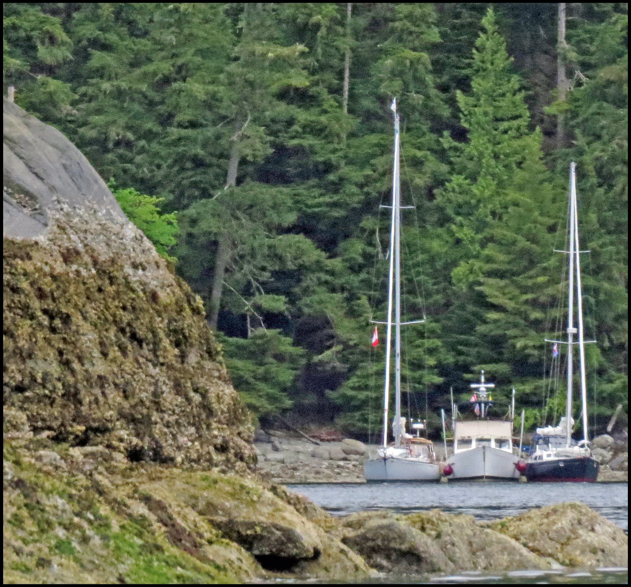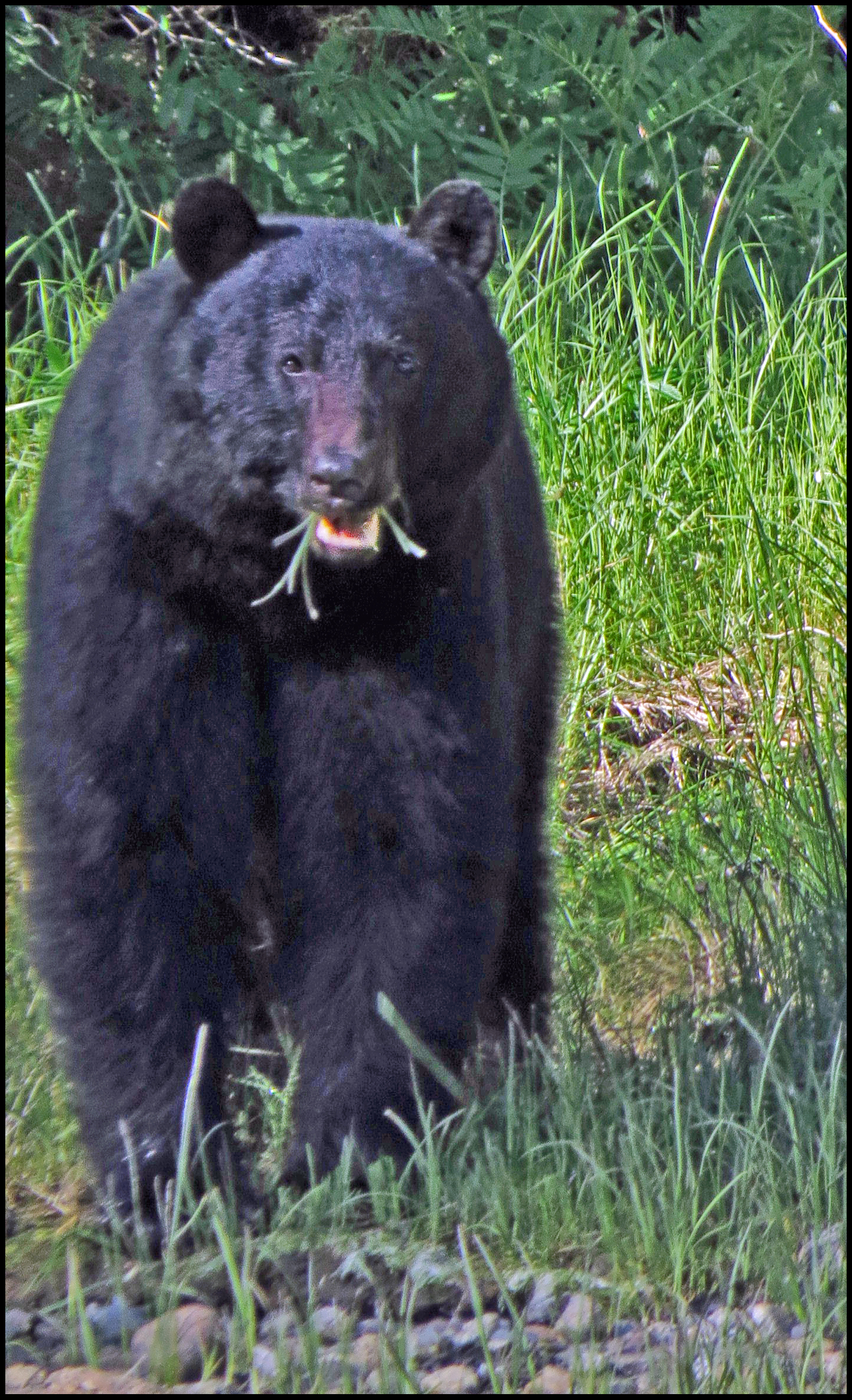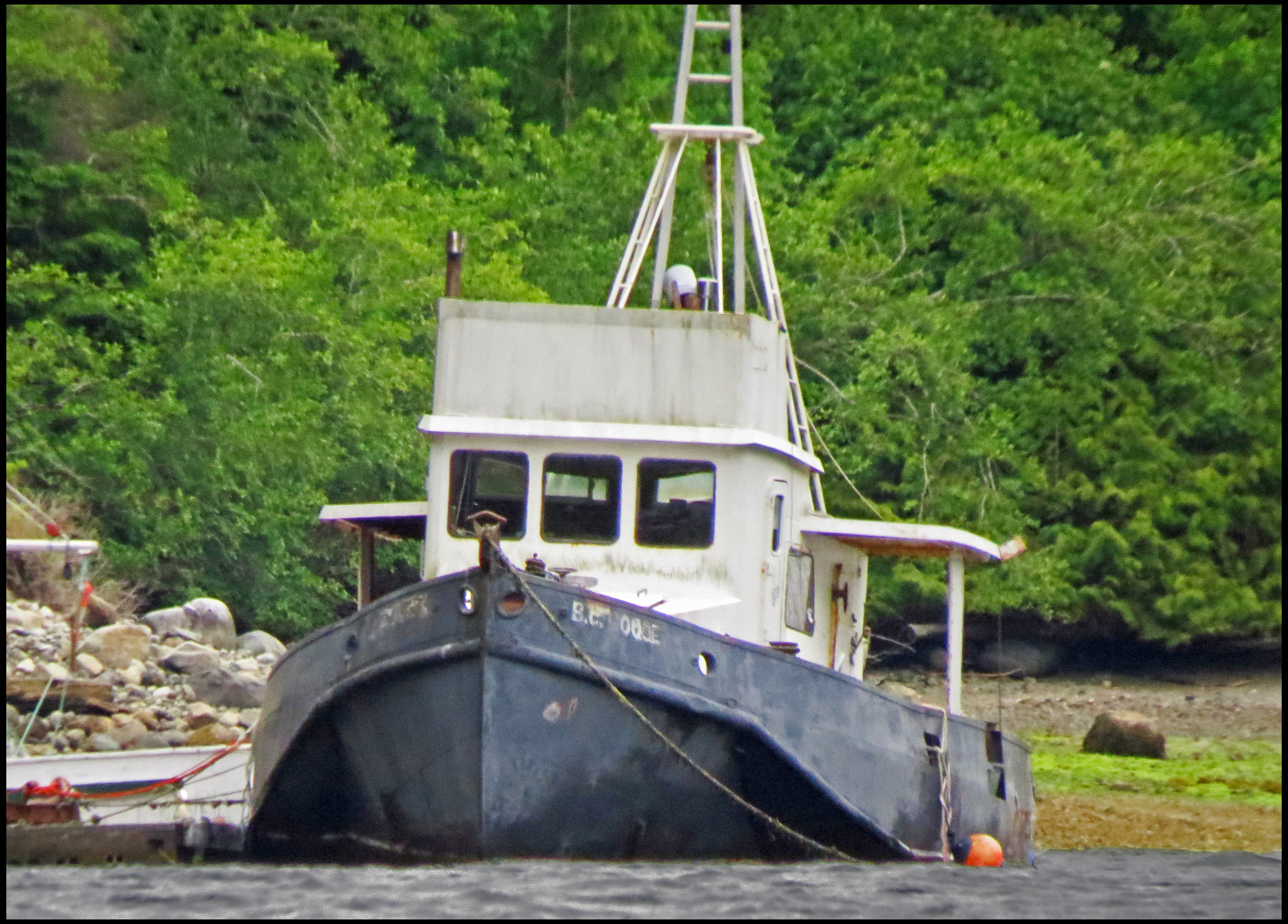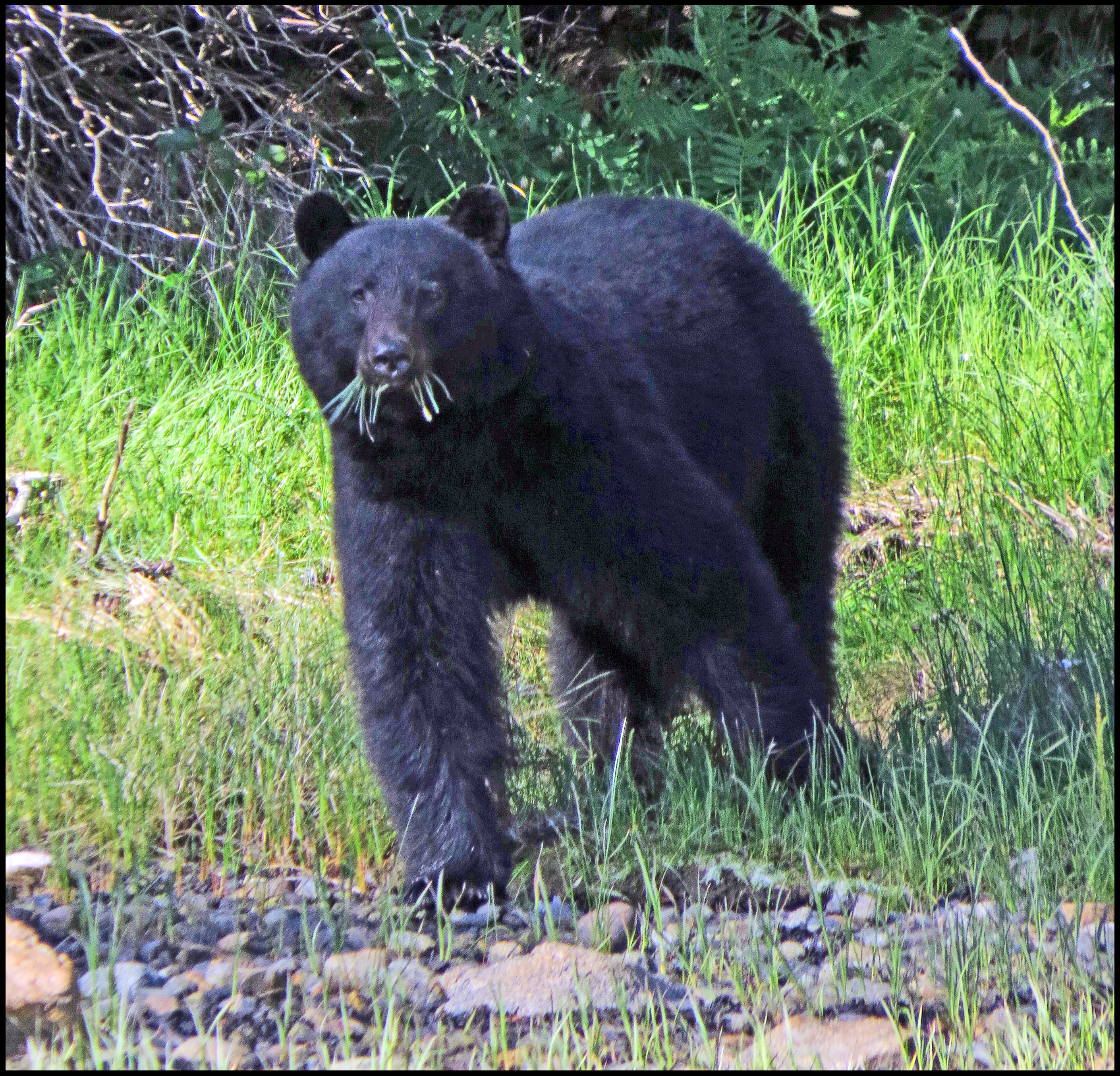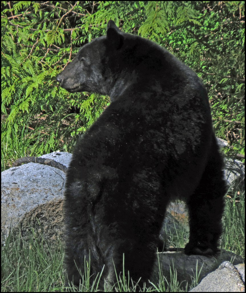 This evening, just before dark, Al spotted a bear turning rocks onshore. I grabbed my camera and tried to get some shots, even though it was almost dark.