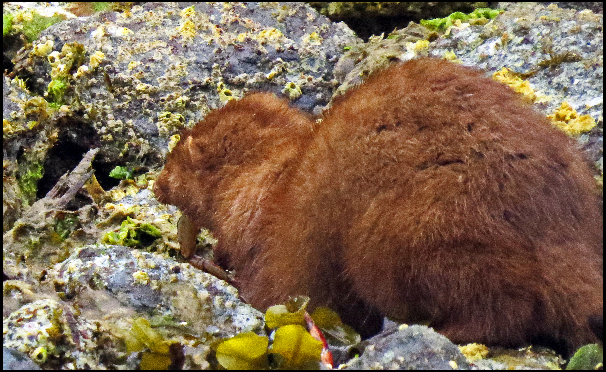 Just before I got to the boat, I notice a little wake up ahead. At first I couldn’t figure out what was making the wake. So, I zoomed in on it and discovered a mink swimming for all he was worth.